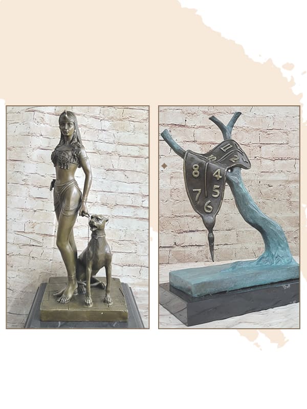 In contrast, cold cast bronze involves resins and plastics layered with paint. These creations are lighter, less durable, and more affordable.