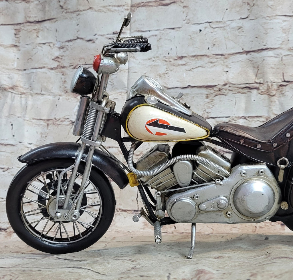 Decorate for any table, desk, or shelf in sporty fashion with Our Rustic Iron 1992 Harley-Davidson FXSTS Softail San Francisco Motprcycle Sculpture. Featuring a rustic iron frame, this charming vintage Motorcycle includes detailed craftsmanship . The Black metal seat and handlebars are finished in natural colors. For more than 20 years, European Finery has been providing high quality sculpture, accessories, and decor for any room for its customers' homes. Based in New York area, We grown to become one of the largest importers and wholesalers of home decor and hand made sculptures in the country. Whether you're looking for accent Sculpture, wall decor, vintage Toys, or just about any outdoor lifestyle sculpture , We Became a proven and trustworthy name that has become synonymous with superiority.