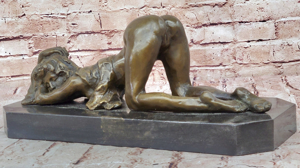 Experience the perfect blend of sensuality and sophistication with the 100% Hot Cast Bronze Nude Erotic Girl on Knees Lesbian Art Sculpture by Preiss. This stunning work of art captures the essence of feminine grace and emotional depth, crafted with precision using the ancient lost-wax casting method to preserve every intricate detail.