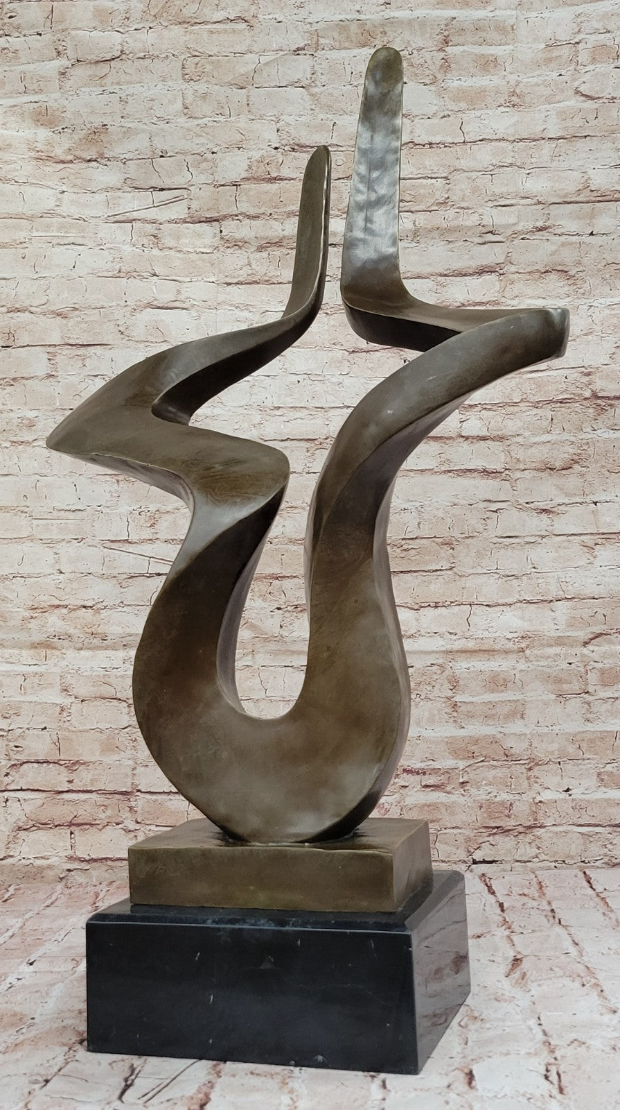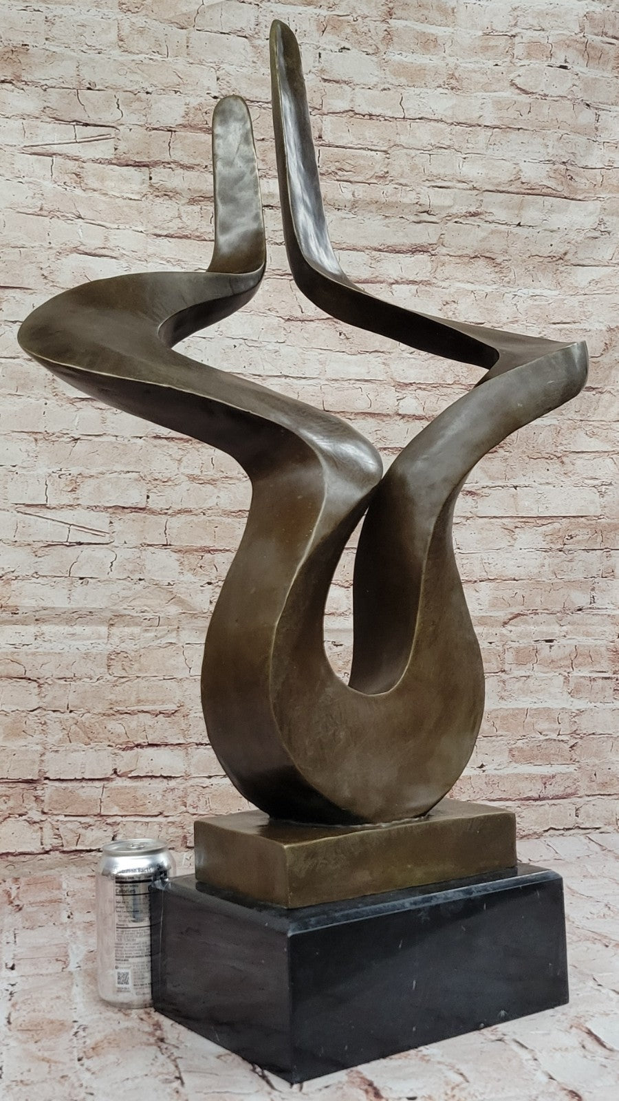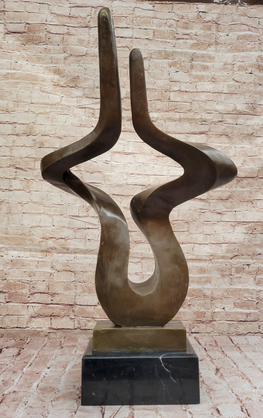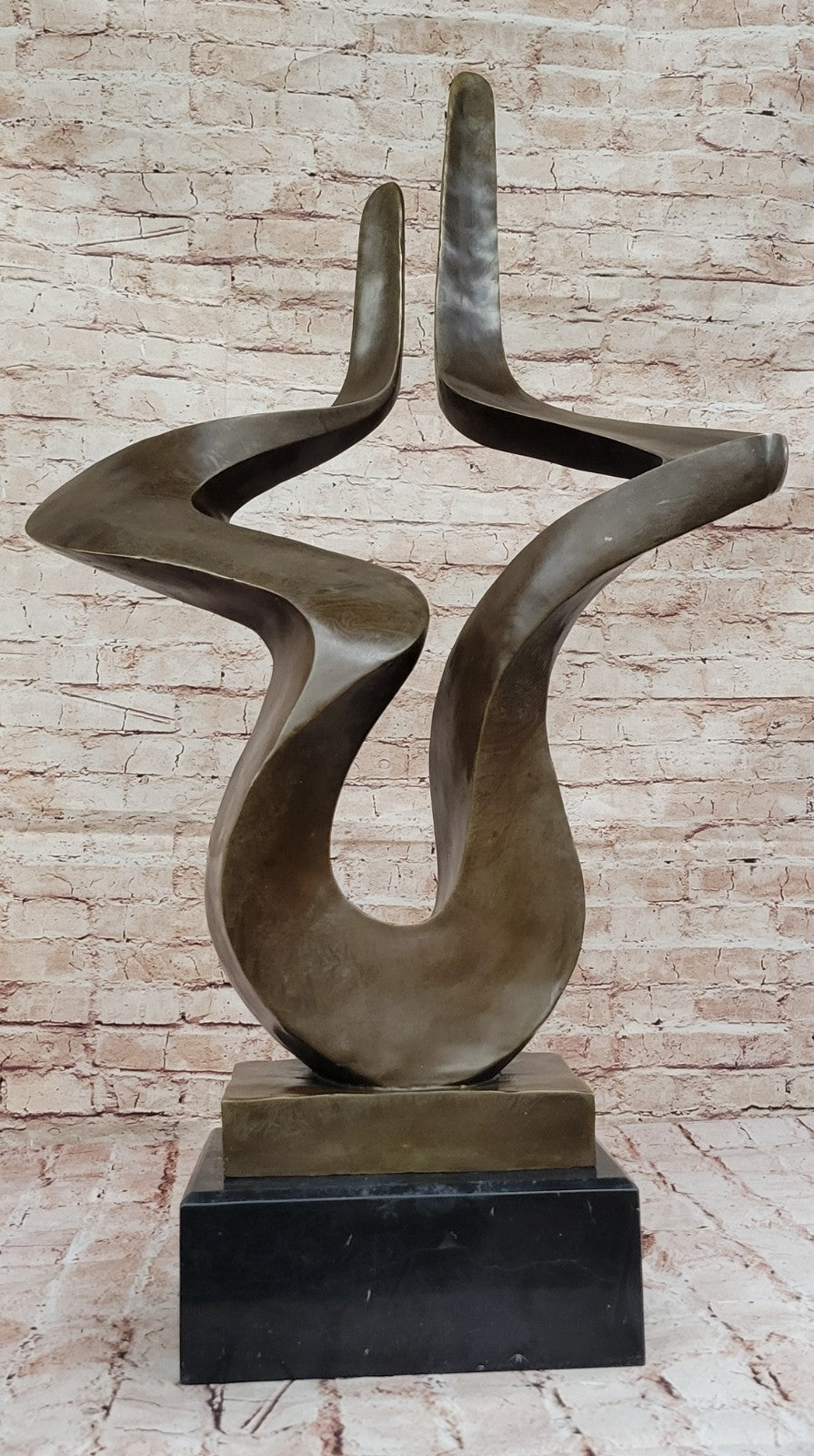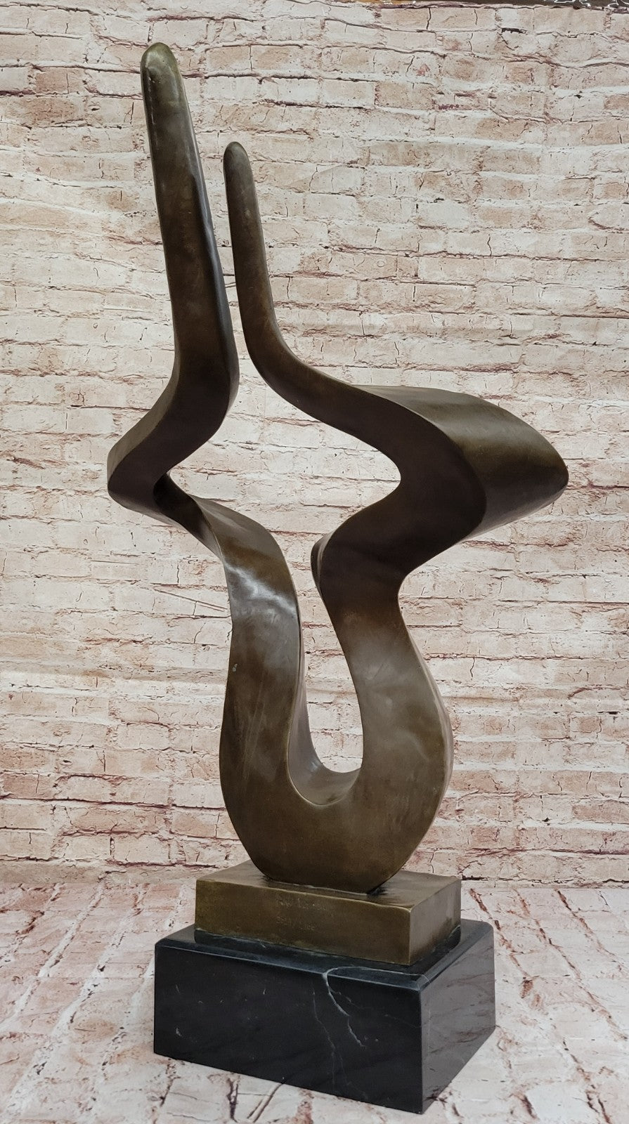 This abstract bronze sculpture is mounted upon a polished black marble base, providing a sense of sophistication and stability. The combination of the smooth marble and textured bronze creates a visually stunning contrast, enhancing the overall presentation. The piece is signed by Aldo Vitaleh, affirming its authenticity and value as a collectible artwork.