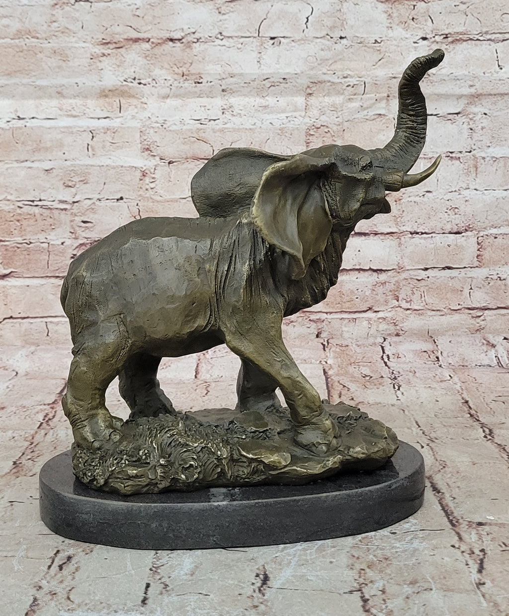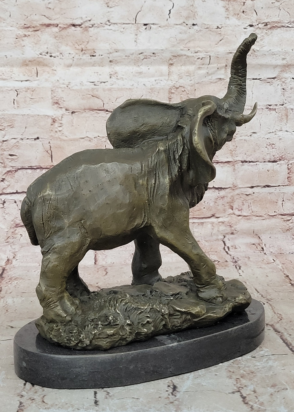 This remarkable piece is entirely crafted from bronze and meticulously handmade with the time-honored "Lost Wax Method," a technique that ensures intricate details and unparalleled quality. It bears the signature of the artist Bugatti, adding quality to its already remarkable craftsmanship. Whether displayed in your home, office, or gallery, this sculpture serves as a testament to the beauty and individuality of the elephant, reminding us of the diverse and captivating wonders of the natural world. It's a true work of art that not only captures the essence of this majestic creature but also provides a unique and captivating addition to any collection.