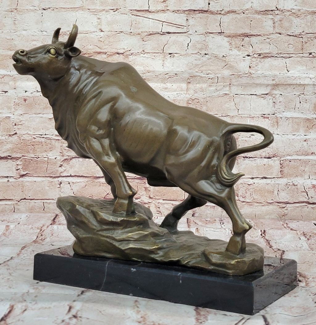 Despite its imposing and burly appearance, this magnificent creature is an extravagant specimen, displaying exquisite beauty and lifelike qualities. The attention to detail in the sculpture highlights the proportion and musculature of the bull's body, creating a stunning and realistic portrayal. The artist, Miguel Lopez, skillfully employed the "Lost Wax Method" to cast this masterpiece, ensuring precision and quality.