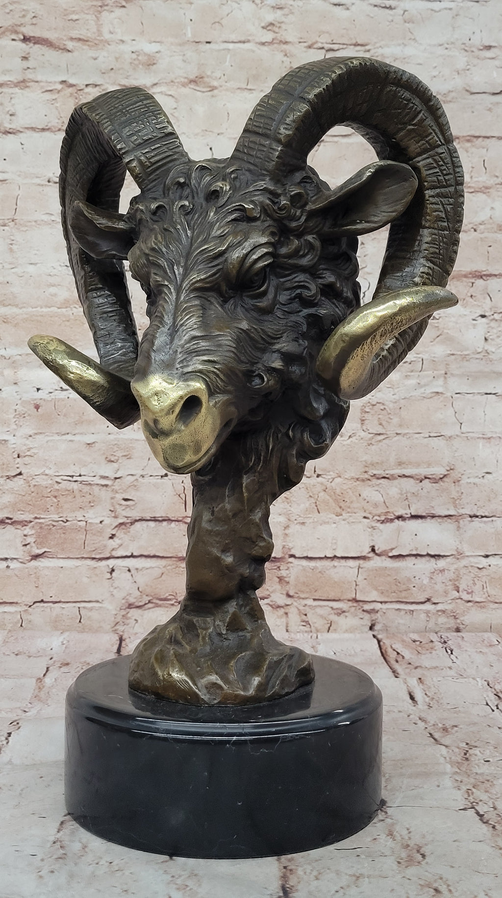 Our bronze sculpture portrays a proud ram, likely inspired by the bighorn sheep, making it a remarkable centerpiece for any desk or tabletop. Meticulously crafted by hand, this sculpture is fashioned from 100% bronze and exhibits a captivating brown patina. The intricate details and lifelike representation showcase the artist's expertise in capturing the essence of this revered creature.