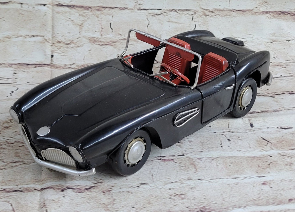 Decorate for any table, desk, or shelf in sporty fashion with Our Rustic 1955 Black BMW 507 Convertible car. Featuring a rustic iron frame, this charming vintage Classic Car includes a fine detail's. The black metal exterior seat are finished in Red colors. For more than 20 years, European Finery has been providing high quality sculpture, accessories, and decor for any room for its customers' homes. Based in New York area, We grown to become one of the largest importers and wholesalers of home decor and hand made sculptures in the country. Whether you're looking for accent Sculpture, wall decor, vintage Toys, or just about any outdoor lifestyle sculpture , We Became a proven and trustworthy name that has become synonymous with superiority.