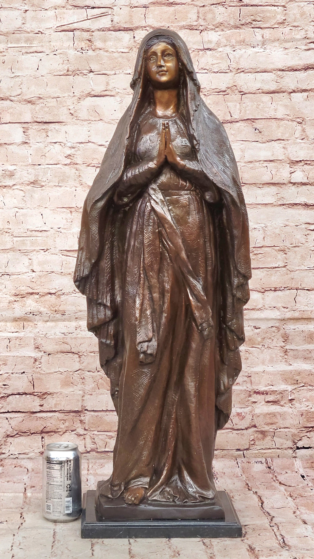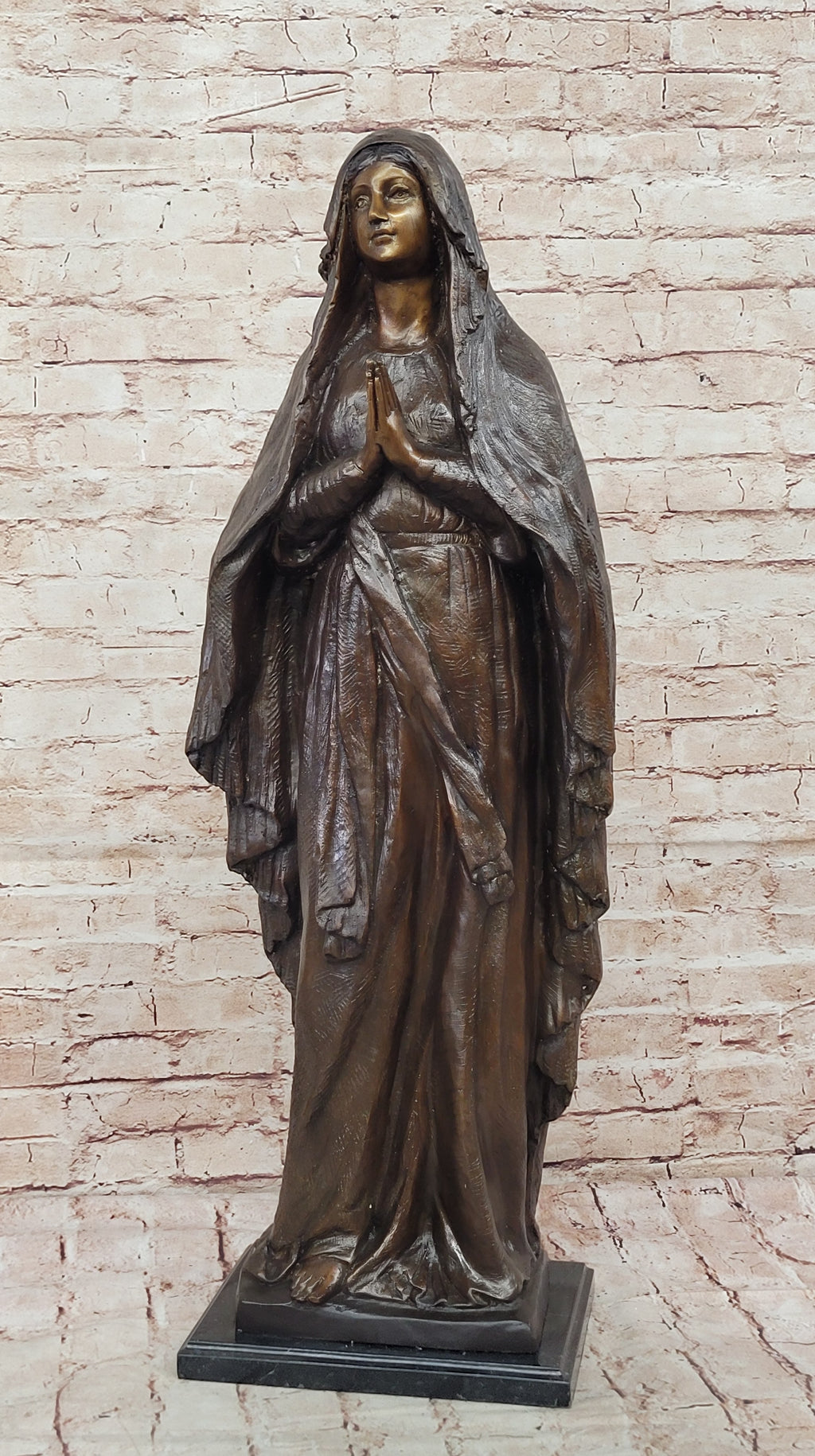 Meticulously crafted using the renowned "Lost Wax Method," the sculpture boasts a striking two-toned brown patina that accentuates its intricate details and timeless beauty. With the distinguished signature of the esteemed artist Giancarlo, this masterpiece finds its place atop a sturdy marble base, enhancing its aesthetic appeal and ensuring a secure display on any mantle, bookshelf, or dresser. An ideal gift for devout followers and spiritual seekers alike, this sculpture embodies the enduring strength and grace of faith, offering solace and inspiration to all who behold its timeless beauty.