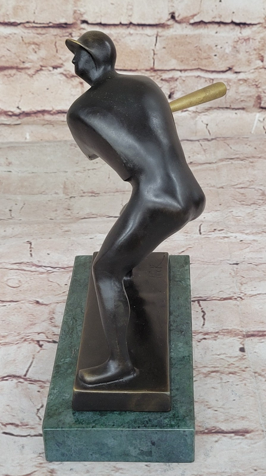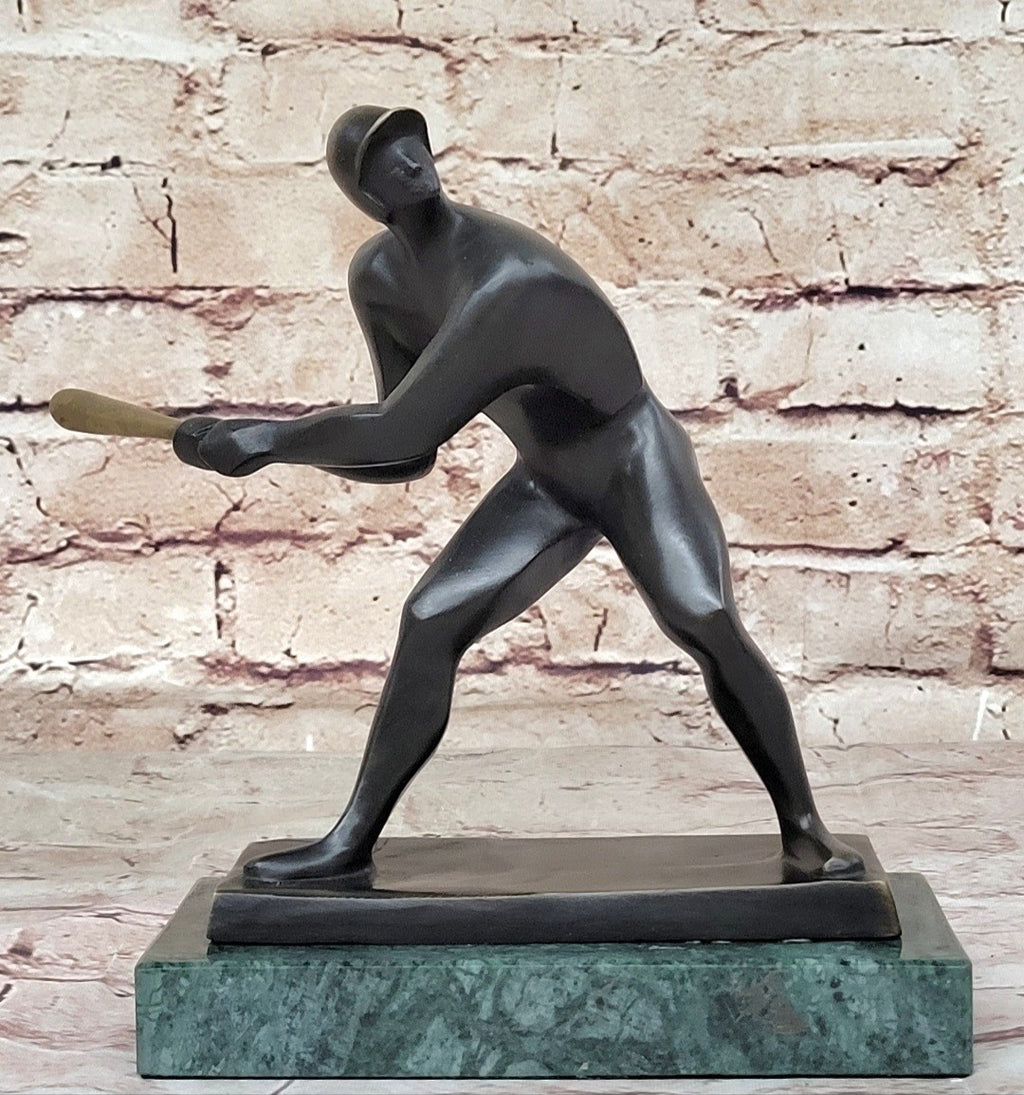 Dressed in a traditional baseball uniform, complete with a batting helmet, the sculpture encapsulates the spirit of the sport. Whether you're a baseball enthusiast or seeking the perfect gift for a sports lover, this bronze masterpiece is an ideal choice. The sculpture, made from 100% bronze, features a rich brown patina that enhances the details and brings the scene to life. Mario Nick's signature adds authenticity to the piece, and the "Lost Wax Method" ensures a faithful reproduction of the artist's original work.