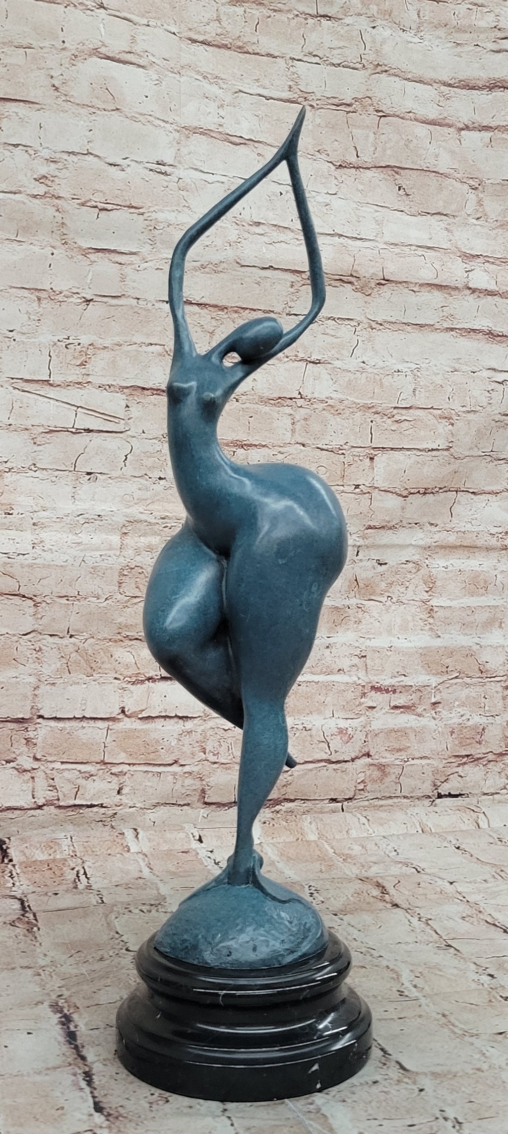 Bring timeless elegance and modern artistry into your space with this Abstract Woman Signed Milo Sculpture, a stunning bronze figurine that captures the graceful essence of a dancing nude woman. Meticulously handcrafted using the lost-wax casting technique, this sculpture showcases exceptional detail and artistry, enhanced with a subtle green patina that preserves its beauty for years to come. The figure’s gentle curve and coy upward glance evoke sophistication and charm, making it a striking centerpiece.