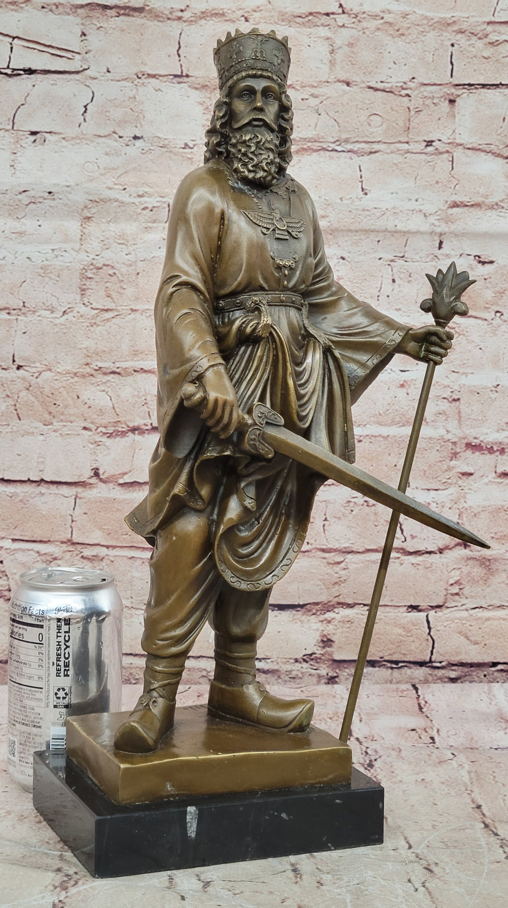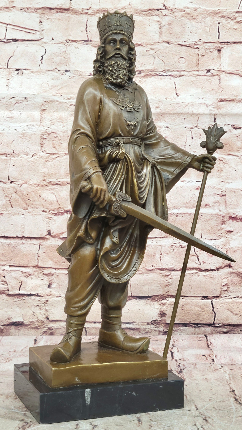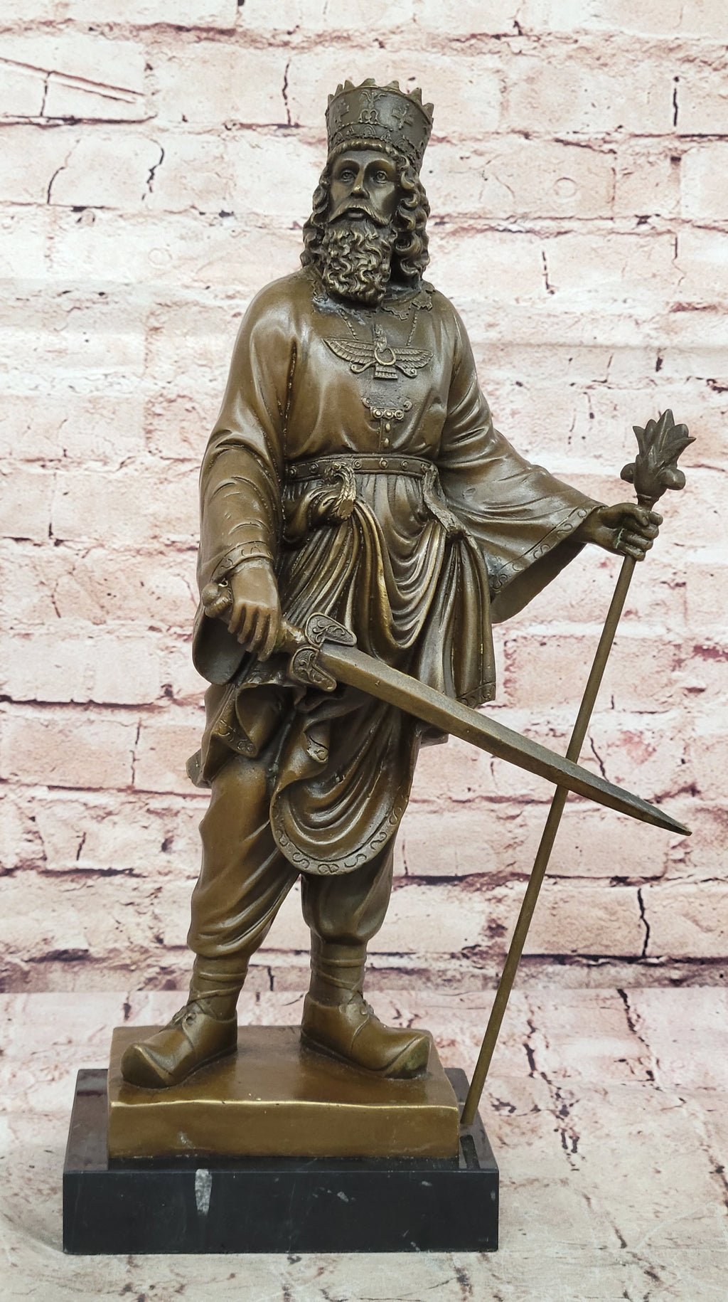 Honor the legacy of Persia’s mighty rulers with this Ancient Persian History and Culture Bronze Sculpture of King Darius and Cyrus the Great. Meticulously crafted, this sculpture captures the commanding presence and regal authority of Darius the Great, the third “king of kings” of the Achaemenid Empire. Every detail, from his penetrating gaze to his poised stance, reflects the power and sophistication of one of history’s most influential leaders.
