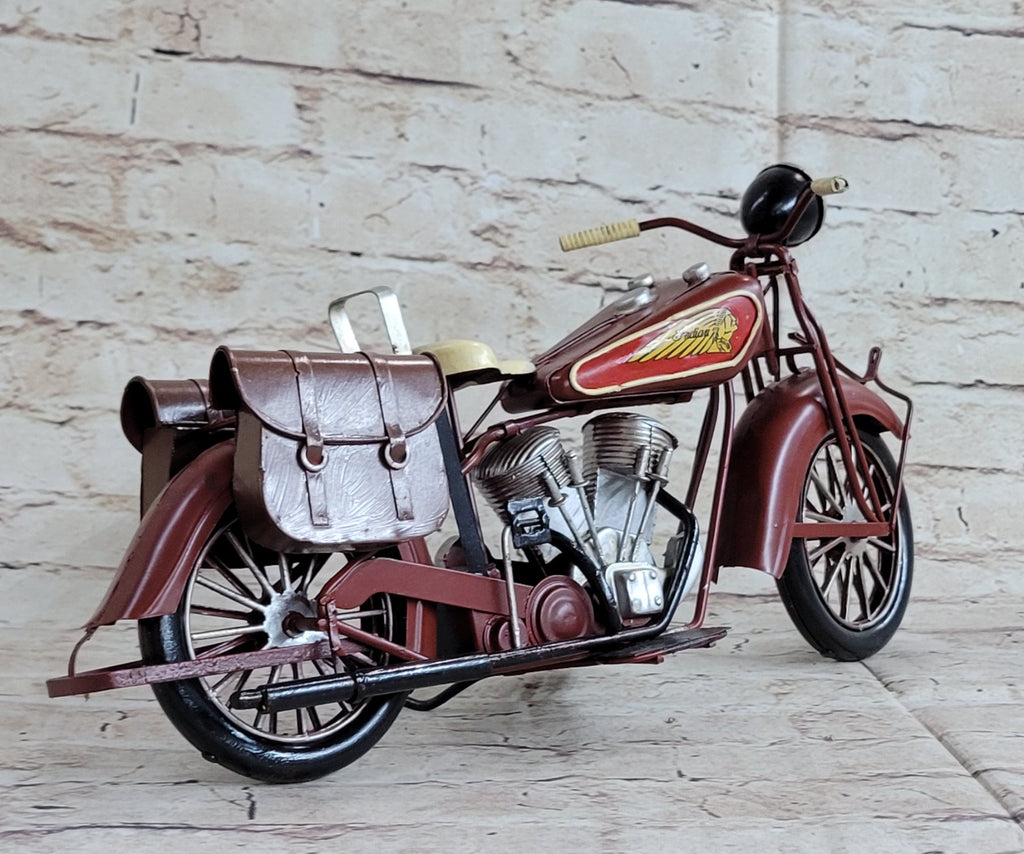 Decorate for any table, desk, or shelf in sporty fashion with Our Rustic Iron Vintage Indian Bike Sculpture. Featuring a rustic iron frame, this charming vintage Motorcycle includes detailed craftsmanship . The Burgundy Exterior and Beige metal seat and handlebars are finished in natural colors. For more than 20 years, European Finery has been providing high quality sculpture, accessories, and decor for any room for its customers' homes. Based in New York area, We grown to become one of the largest importers and wholesalers of home decor and hand made sculptures in the country. Whether you're looking for accent Sculpture, wall decor, vintage Toys, or just about any outdoor lifestyle sculpture , We Became a proven and trustworthy name that has become synonymous with superiority.
