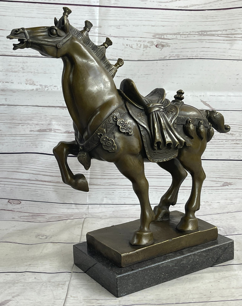 This bronze sculpture encapsulates the essence of the horse's allure, emphasizing freedom and unbridled exploration. It invites viewers to connect with the spirit of these majestic animals, evoking a sense of admiration and respect. Whether displayed as a focal point in a personal collection or as a statement piece in a space, this sculpture resonates with the enduring appeal of the equine world. Its exquisite craftsmanship, realized through the lost wax method, ensures that it stands as a cherished symbol of the horse's untamed spirit and the boundless freedom it represents.