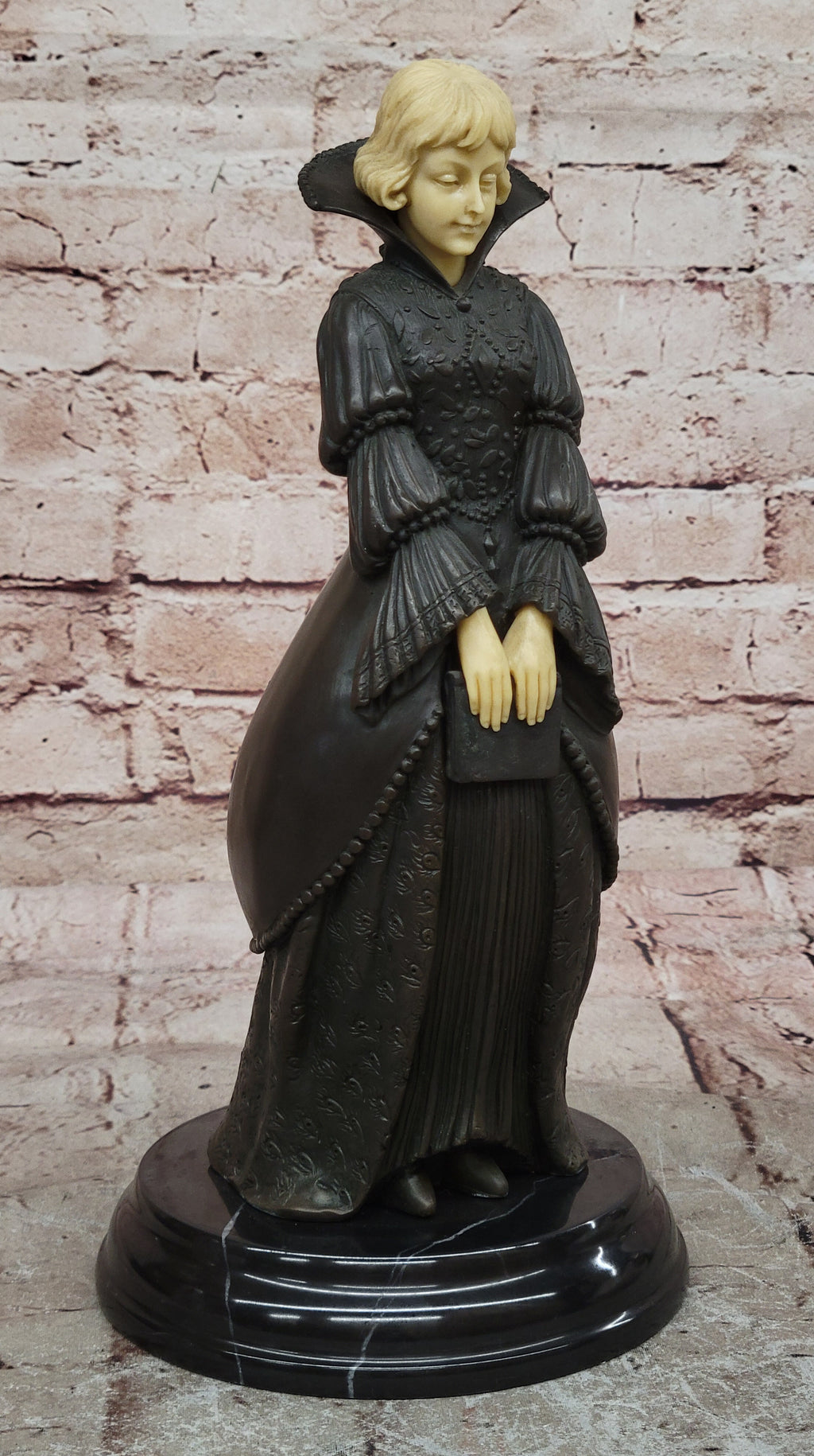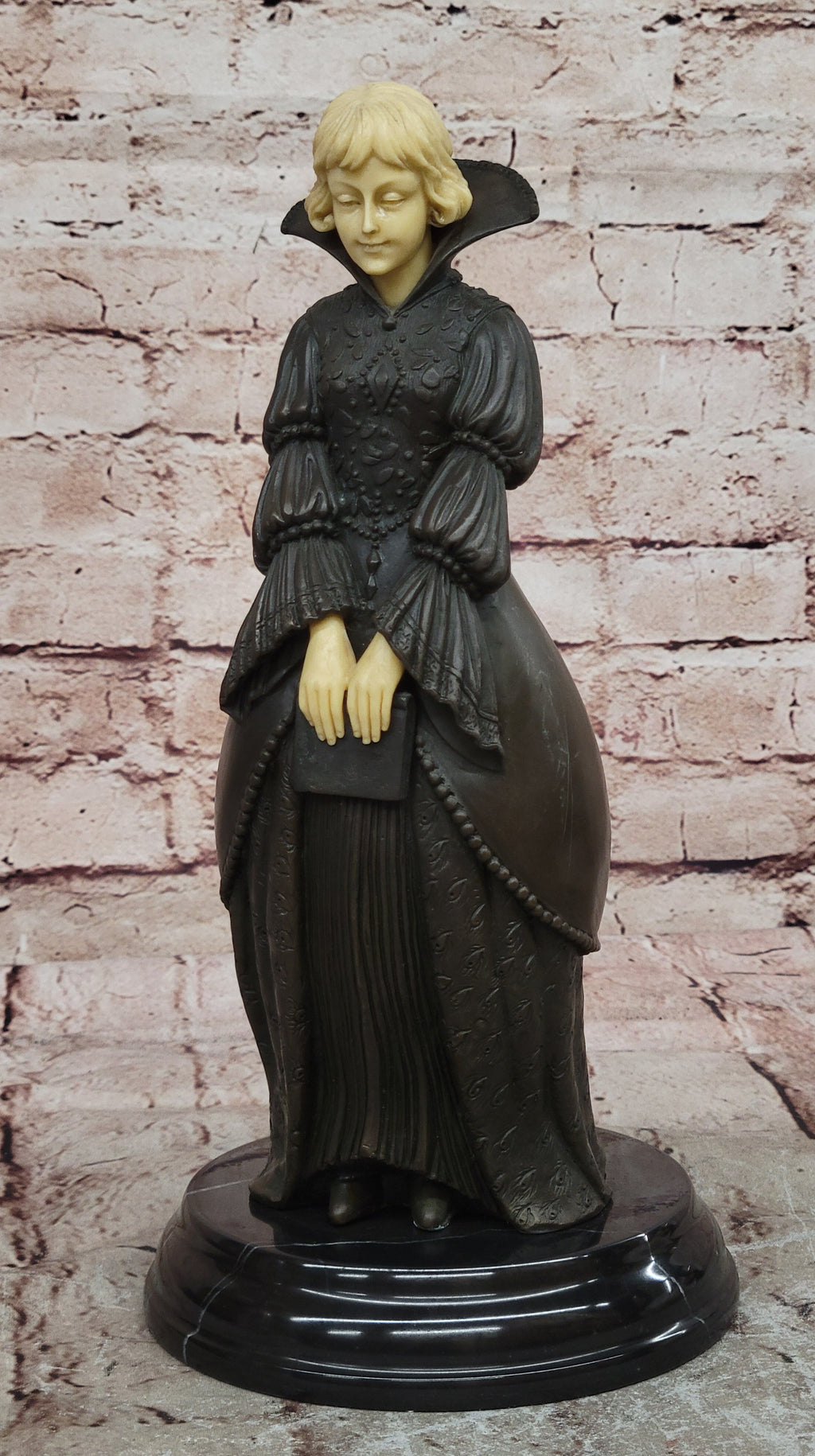 This 100% handmade sculpture is crafted using the ancient lost-wax casting method for its bronze body, while her head and arms are finely sculpted from resin, creating a striking contrast. Finished with a rich brown patina, the statue is mounted on a polished black marble base for an added touch of refinement.