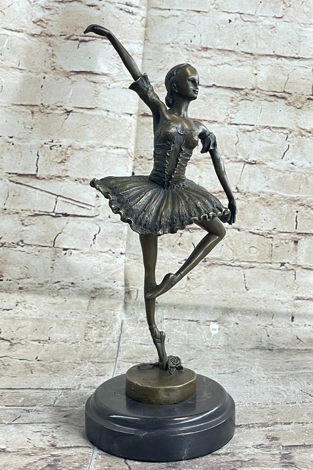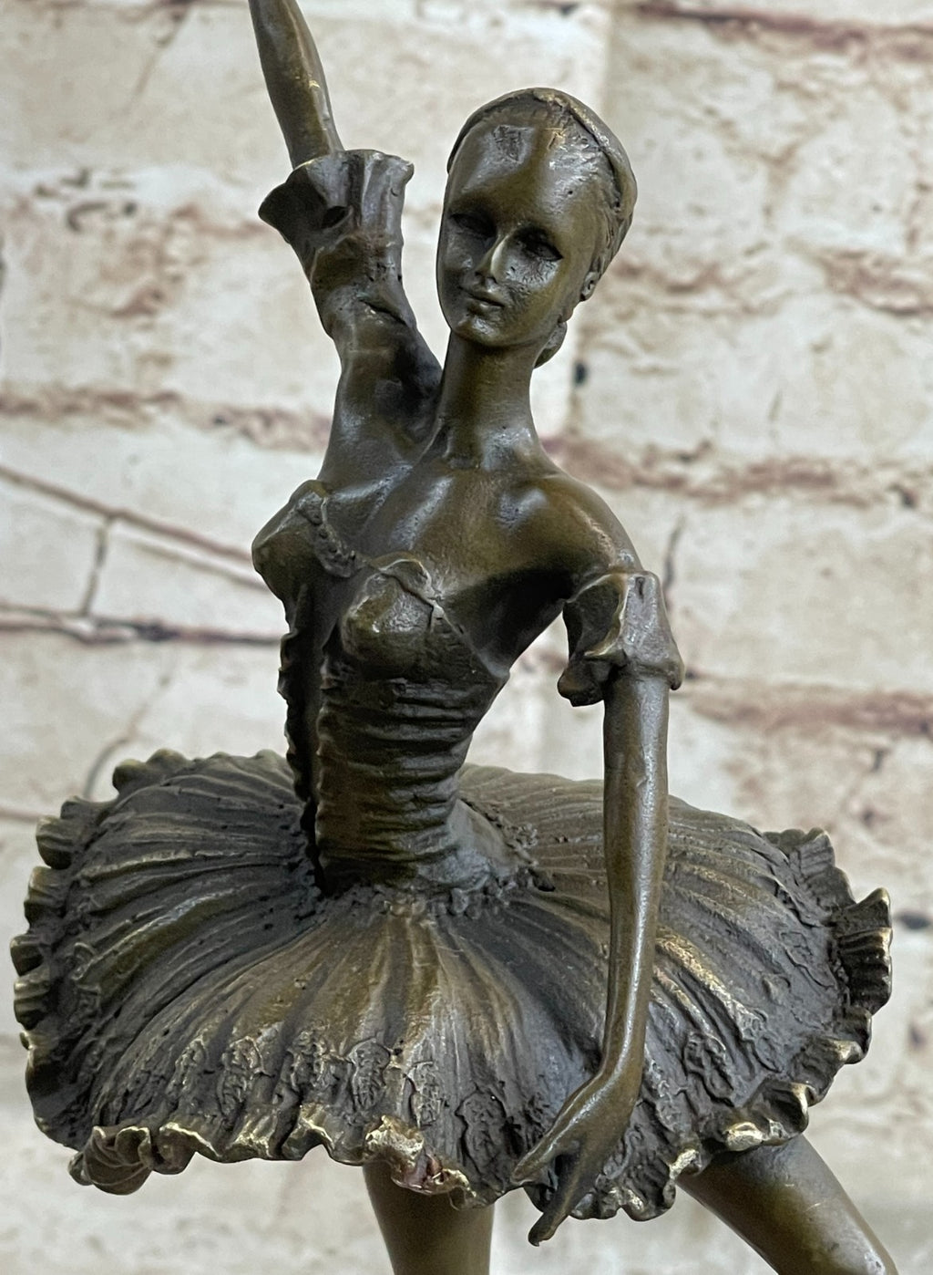 The intricate details of this sculpture, from the delicate curves of her tutu to the subtle lines of her fingers and toes, testify to the artist's skill and commitment to capturing the essence of ballet. Crafted from 100% bronze using the traditional "Lost Wax Method," this piece is a testament to both the enduring appeal of ballet and the enduring quality of bronze art.