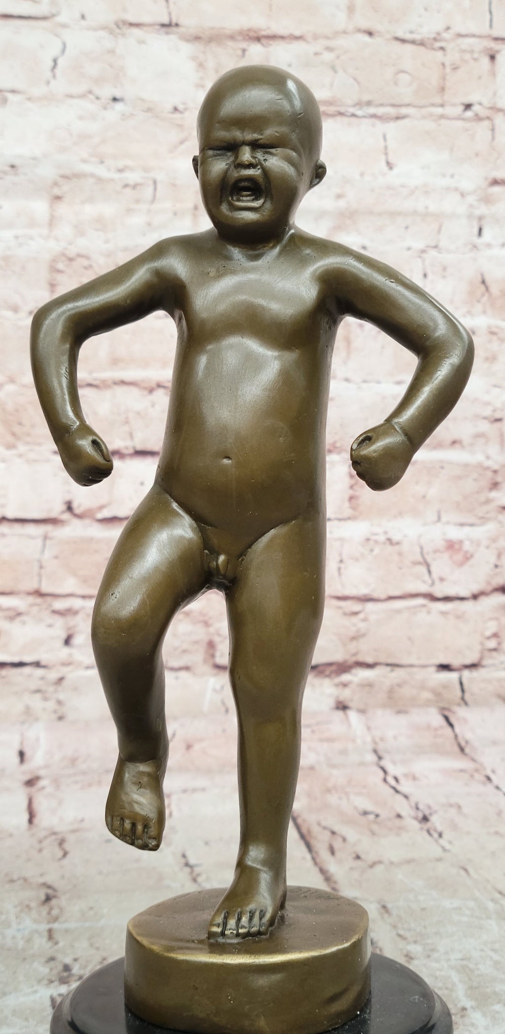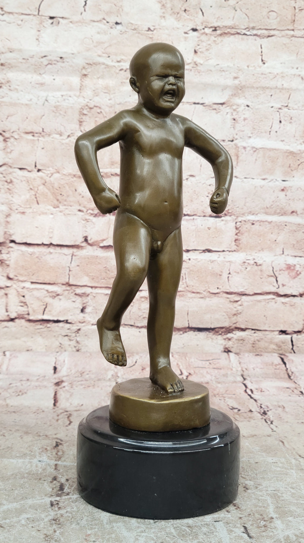 Invite a touch of lively personality into your home or gift it to someone who will appreciate the humor and authenticity of this sculpture. It serves as a conversation starter and a unique addition to any decor. Whether displayed in a living room, nursery, or office, this bronze artwork brings a sense of playfulness and captures the universal experience of childhood tantrums.