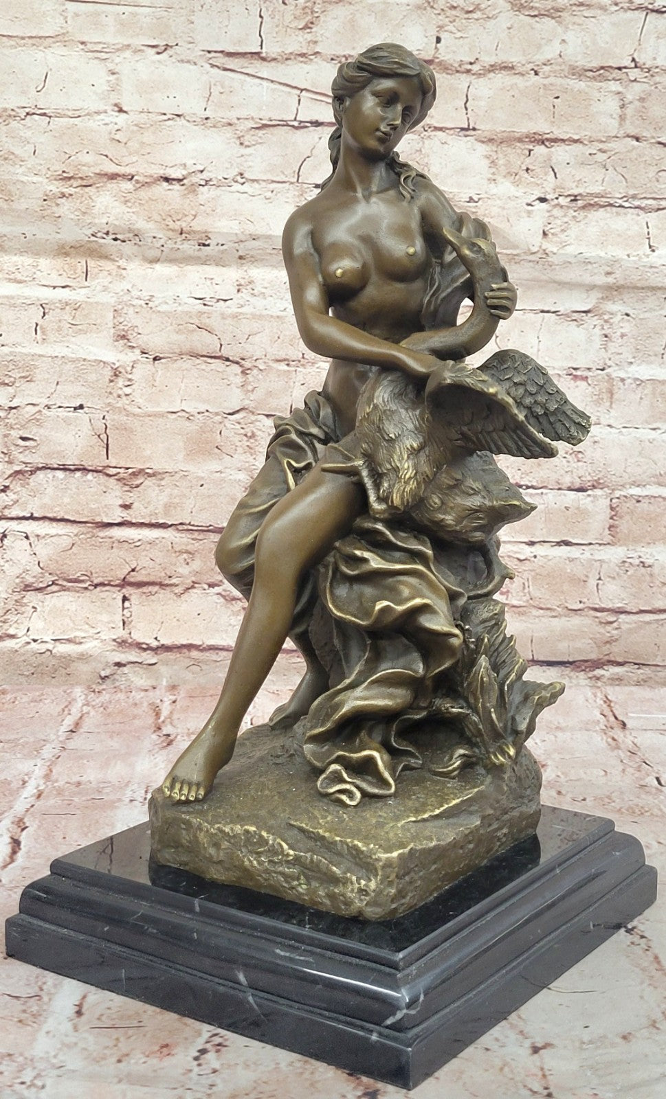 For enthusiasts of mythology or those seeking a sculpture with a narrative depth, the Leda and the Swan bronze sculpture is a timeless piece that brings the grace and intrigue of Greek mythology into the realm of art. Displayed on a black marble base and adorned with the signature of Milo, this sculpture invites contemplation and appreciation for the timeless tales woven into its bronze form.