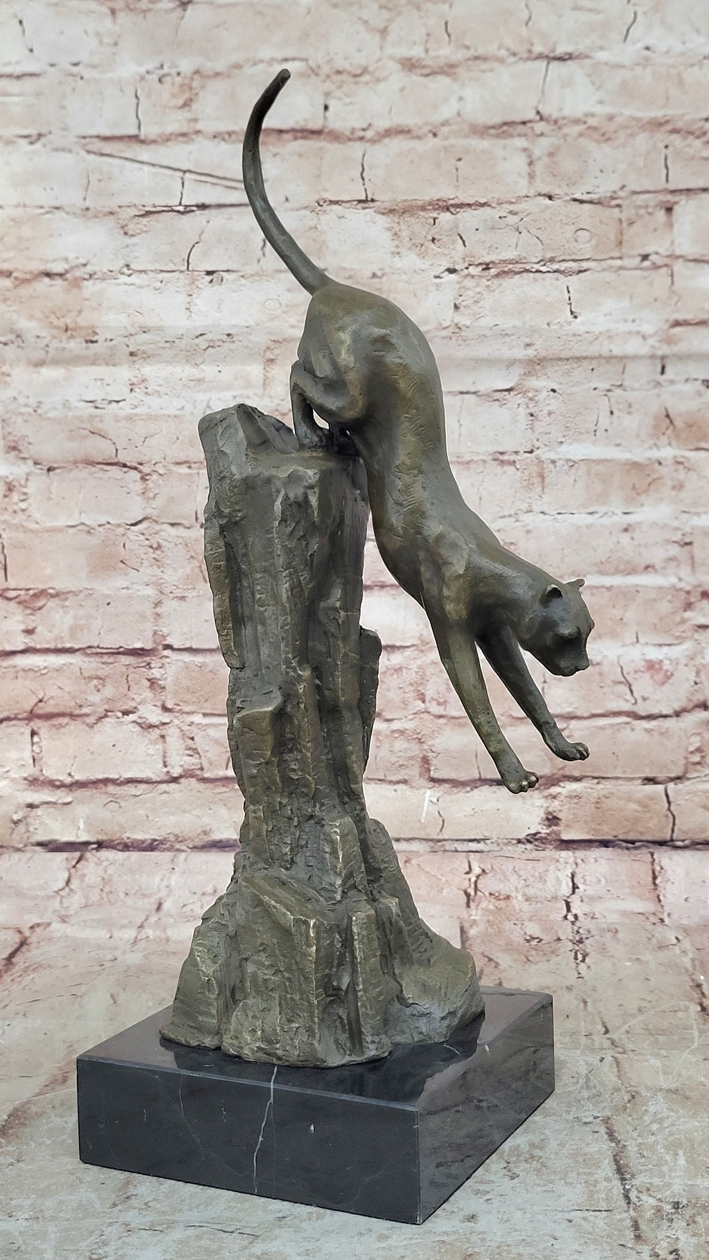 Measuring 15 inches in height, this sculpture is a substantial and well-crafted piece that will command attention in any setting. It is not only a visual delight but also a tactile one, as the felt-bottomed base ensures it rests securely on your furniture without causing any damage. This bronze sculpture is a true class act, offering art enthusiasts and nature lovers alike the opportunity to own a magnificent representation of one of nature's most majestic creatures.