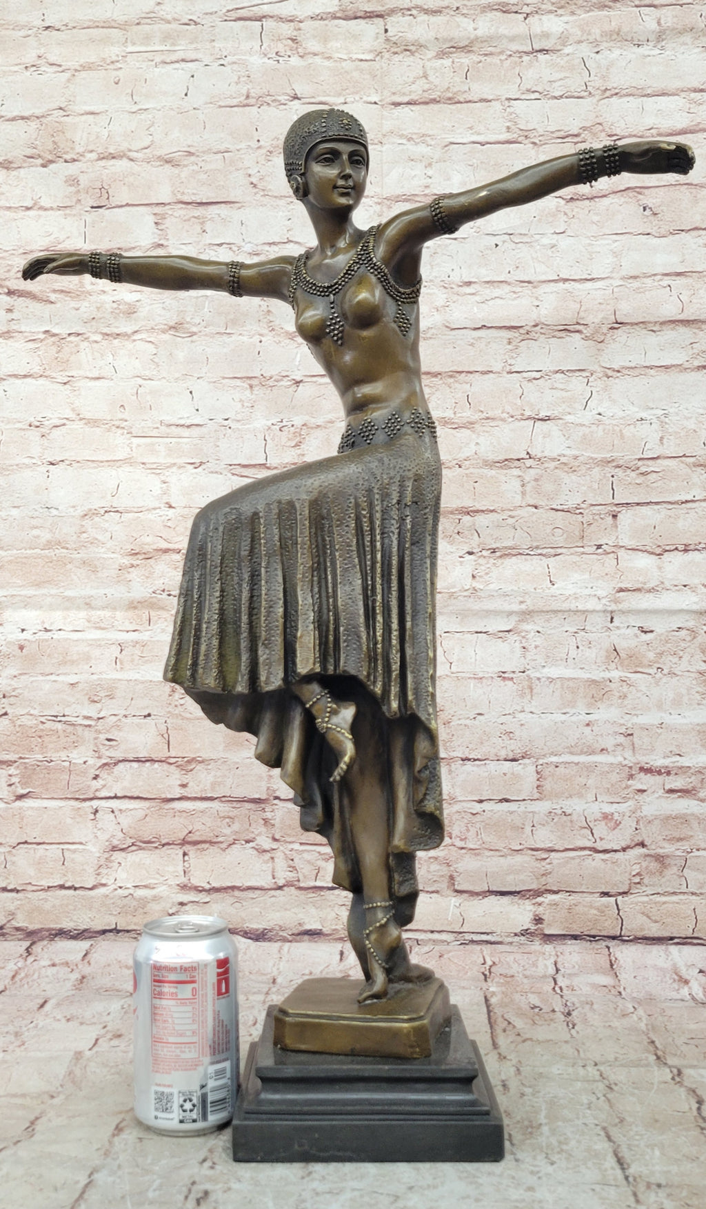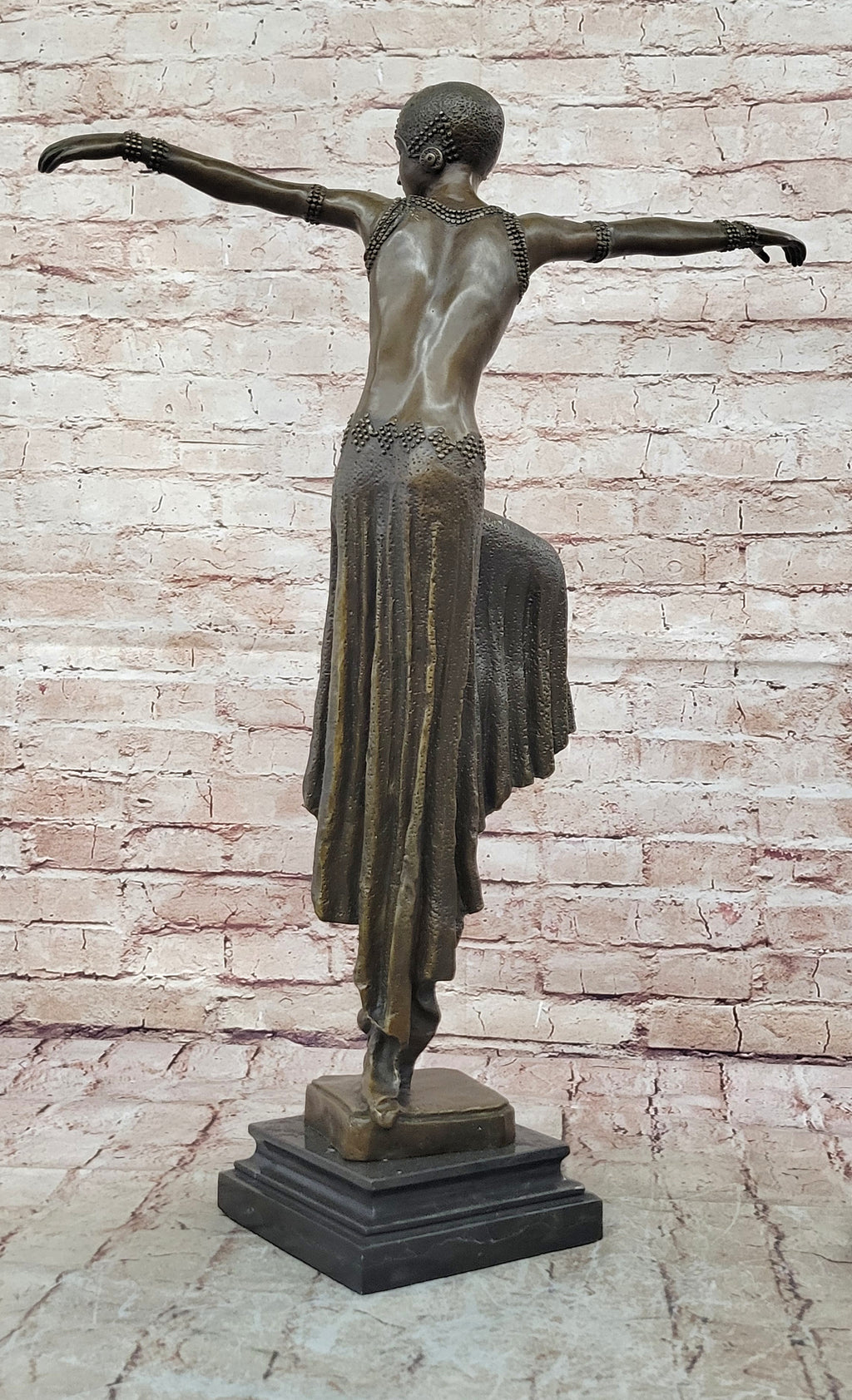 Mounted on a polished black marble base, the sculpture gains both stability and visual contrast, elevating its overall presentation. Ideal as a focal point in a home, office, or art collection, this Art Deco dancer sculpture embodies elegance, movement, and classic European artistry.