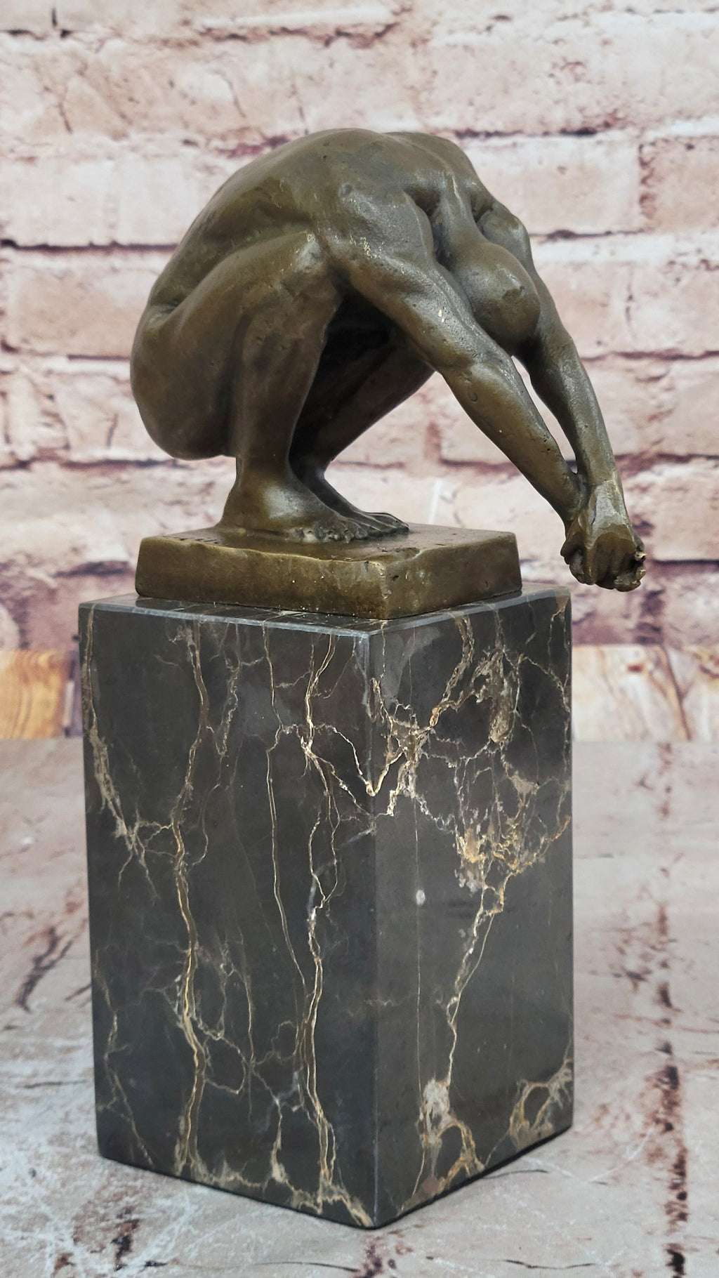 Crafted using the timeless lost-wax casting method, "Diver's Grace" boasts intricate detail and exquisite artistry. The bronze sculpture is mounted on a sleek black marble base, adding a touch of sophistication to its presentation. Signed by the artist Milo, this sculpture is not just a work of art; it's a collector's dream and a celebration of the Art Deco era.