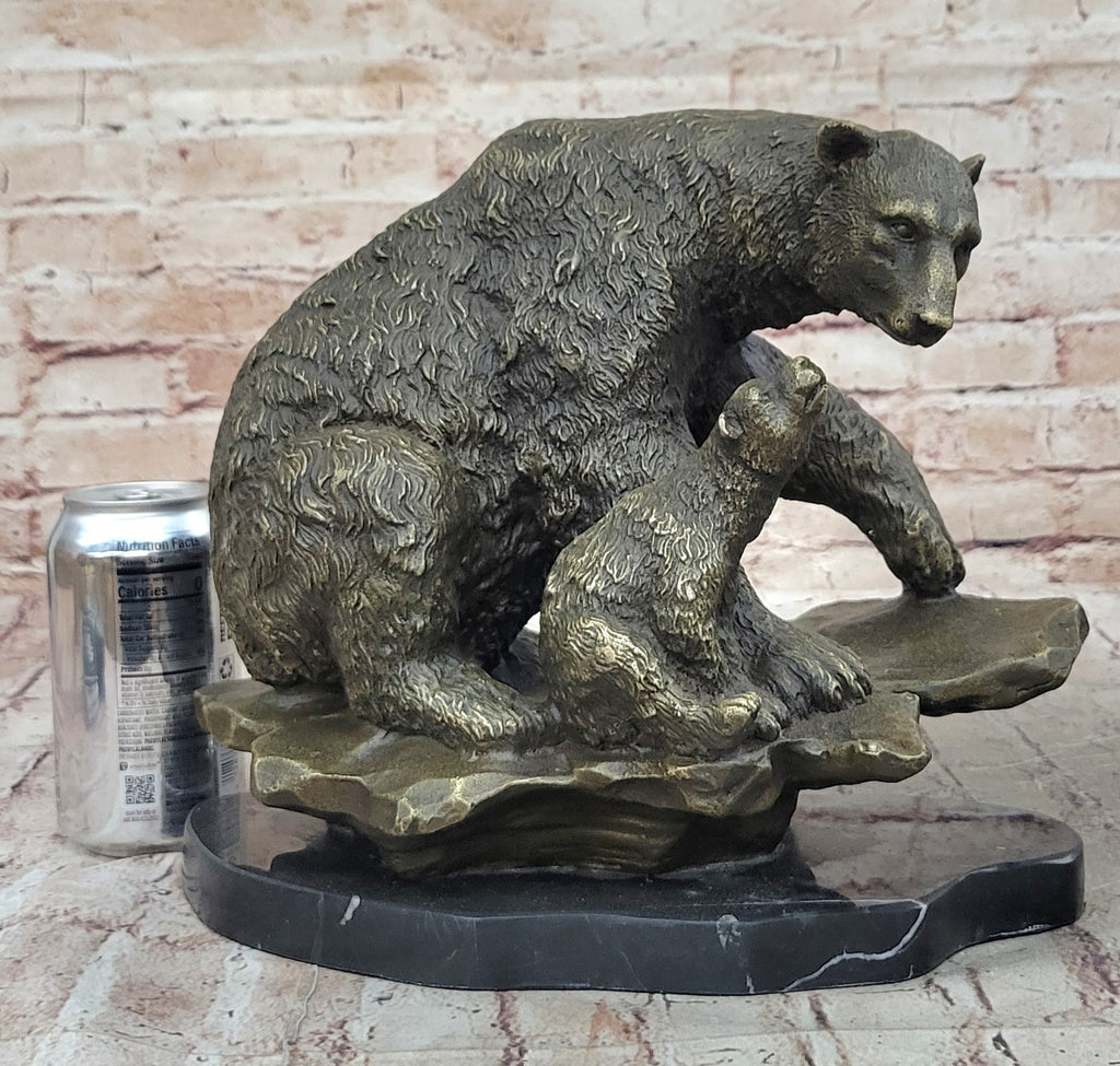 Crafted using the lost wax method, this sculpture reflects the dedication and skill of the artist, Milo. The technique allows for precision and detail, evident in the portrayal of the bears' fur and the overall composition. Resting on a black marble base, the sculpture becomes a meaningful and visually striking addition to any space. The artist's signature adds a personal touch, signifying the authenticity of the piece.