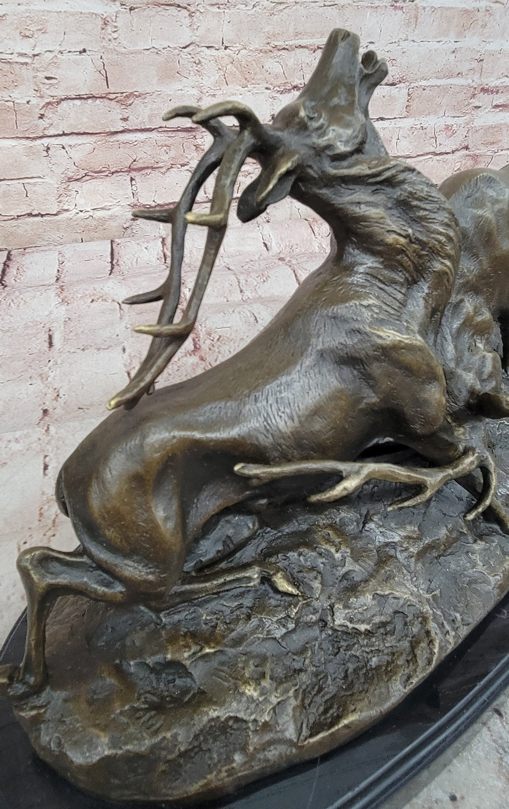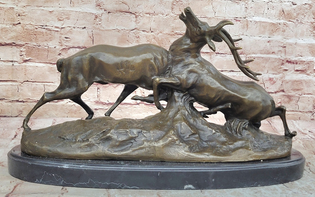 Dive into the captivating world of the animal kingdom with the striking sculpture of two battling deer, a captivating creation by the esteemed artist C. Majdoss. Reflecting the natural rivalry and tenacity ingrained in the animal world, this exquisite bronze piece captures the intensity and strength of the dueling stags in a stunning display of artistry. The detailed craftsmanship and intricate design highlight the beauty and ferocity of the deer, portraying a remarkable scene of nature's inherent struggle for dominance. Mounted on an elegant oval marble base, this sculpture stands as a testament to the skill and dedication of C. Majdoss, offering a timeless and cherished addition to any collection of animal sculptures and a cherished treasure for admirers of the artist's work.