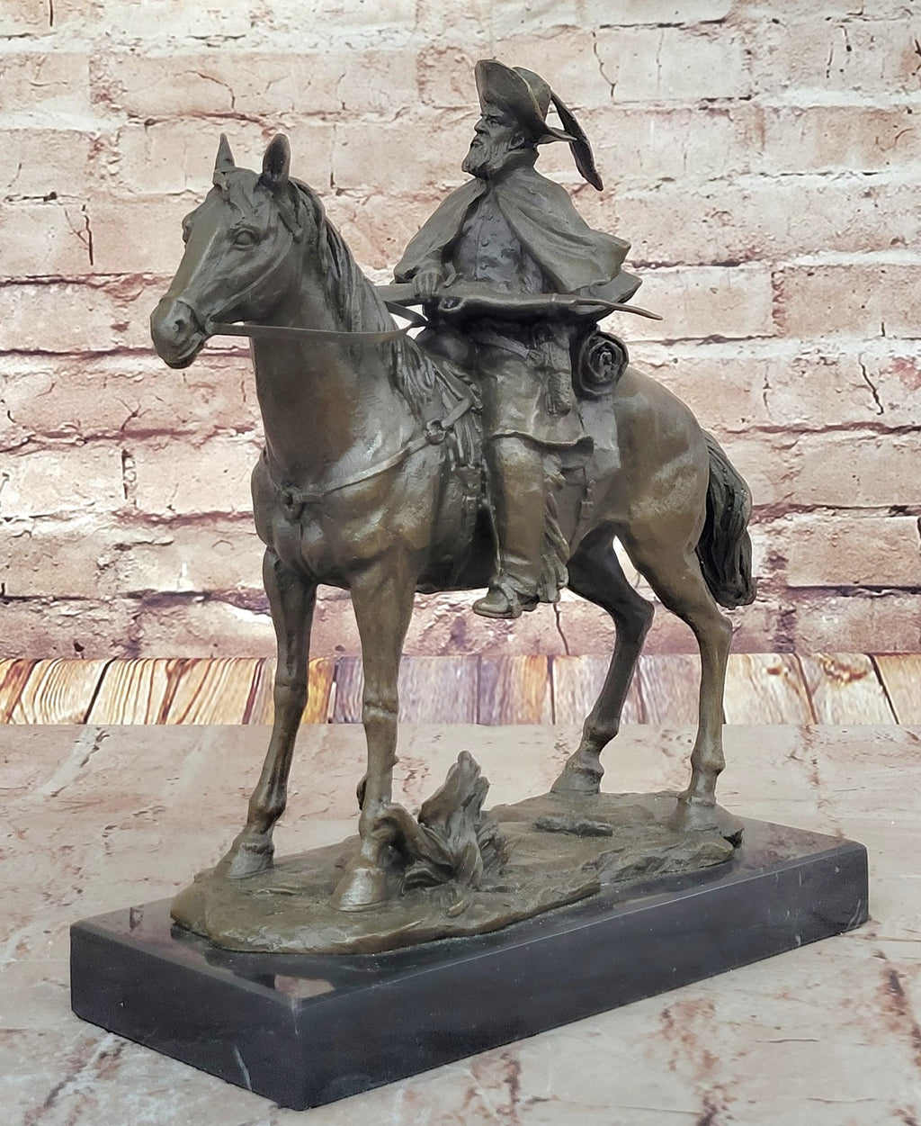 Handcrafted using the lost wax method, this sculpture exemplifies the dedication and skill of the artisan. Each element, from the wrinkles on the man's face to the texture of the horse's mane, is carefully sculpted to perfection. The rich brown patina finish enhances the depth and character of the bronze, adding warmth and sophistication to the piece.