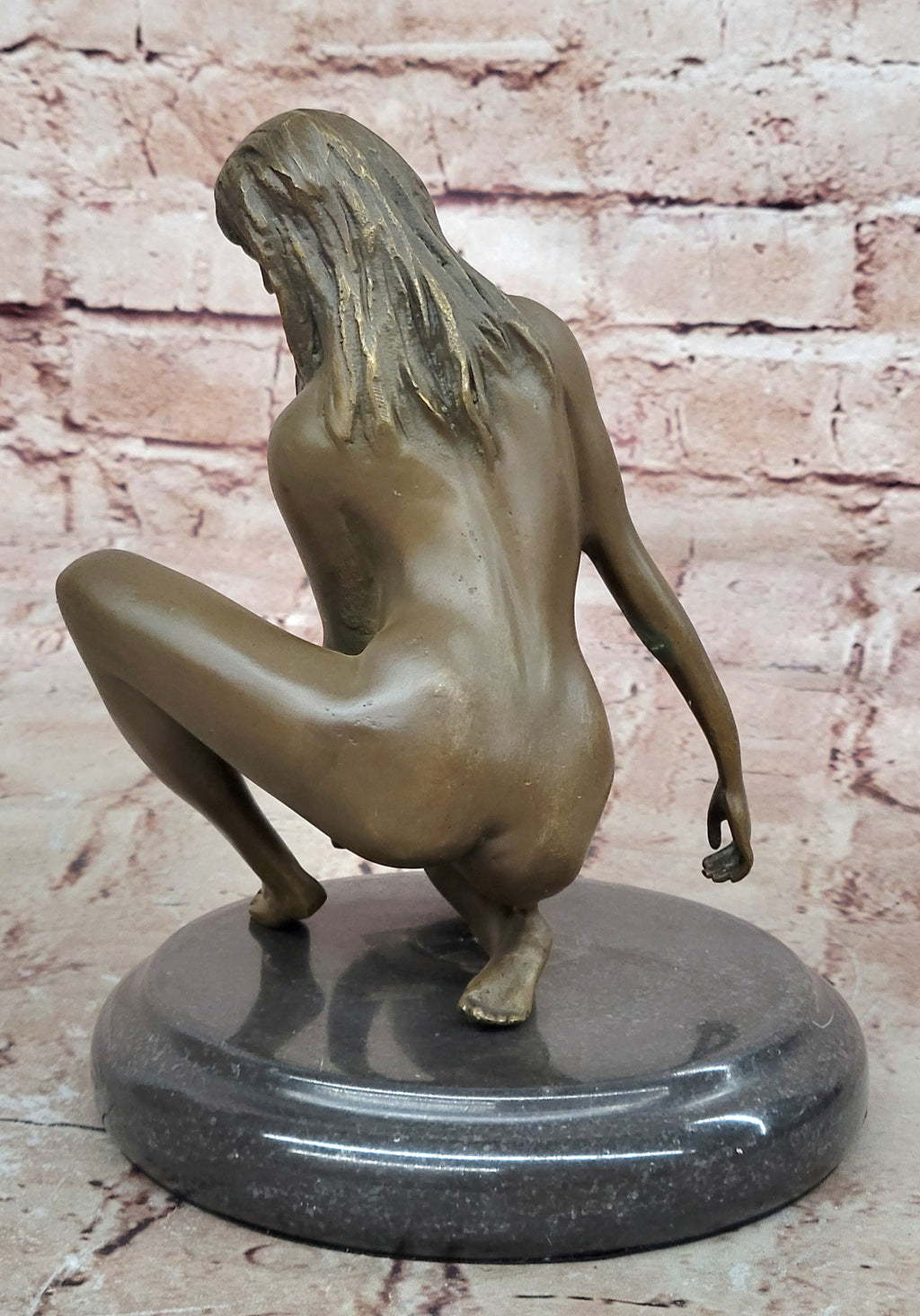 The sculpture comes to life through the intricate process of lost wax casting, a testament to the artist's dedication to his craft. Poised upon a sleek black marble base, this sculpture is more than a visual delight – it is a celebration of artistry, sensuality, and the revival of innocence. Elevate your space with this exceptional work that bears the signature of the talented artist Mavchi, embodying the grace and allure of the human form in its purest state.