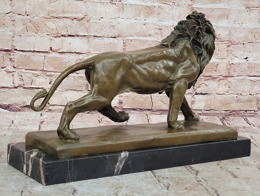 Created by the renowned artist Milo, this masterpiece is a testament to his dedication to precision and artistry. The signature of the artist adds an extra layer of authenticity and value to the sculpture, making it a prized possession for collectors and art enthusiasts alike. Displaying this sculpture not only brings the wild beauty of the jungle into your home or office but also serves as a tribute to the majestic and awe-inspiring presence of the lion in nature.