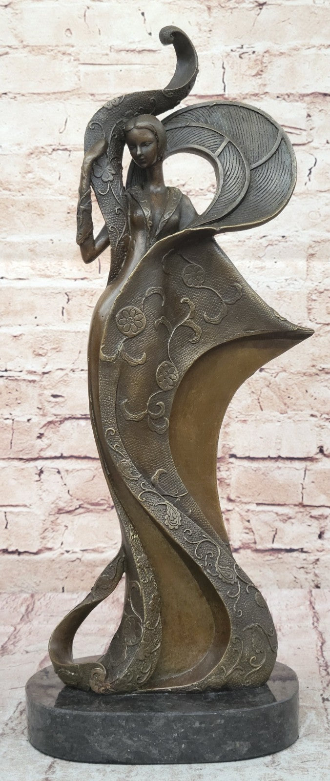 Elegant, graceful, and striking, this stunning bronze sculpture epitomizes the timeless allure of art and serves as a testament to the enduring legacy of the renowned artist Erte. With its captivating presence and impeccable craftsmanship, the sculpture offers a rare and unique opportunity to own a piece of art that transcends time and exudes a sense of refinement and sophistication. A remarkable addition to any art collection, this masterpiece is a true celebration of beauty, grace, and artistic finesse, making it an exquisite and highly coveted treasure that will be cherished for generations to come.