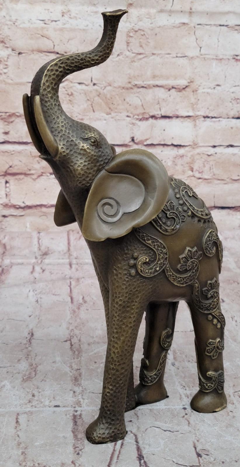 Every intricate detail of this magnificent bronze sculpture speaks to the artist's exceptional skill and attention to authenticity. The lifelike rendering of the lion's regal mane and the elephant's textured skin showcases the artist's dedication to capturing the essence of these extraordinary creatures.