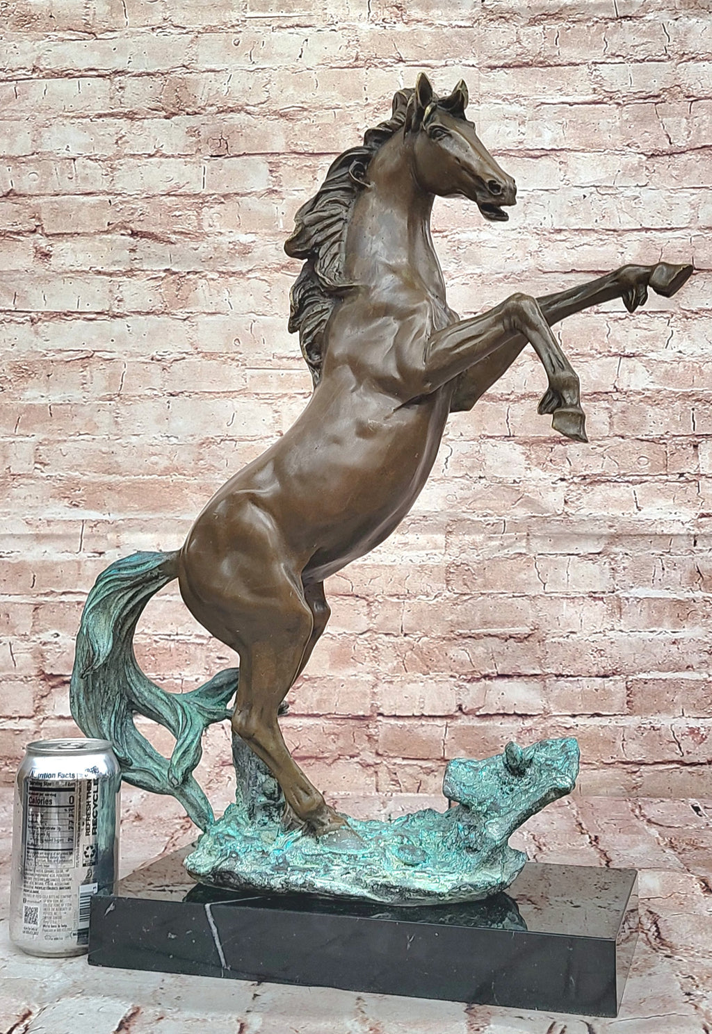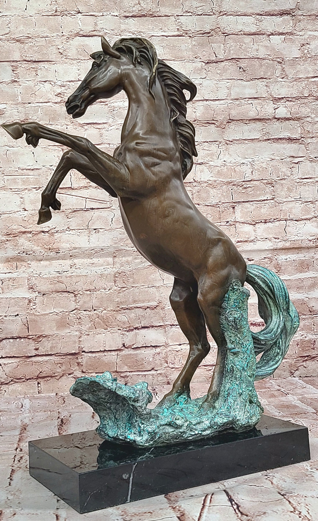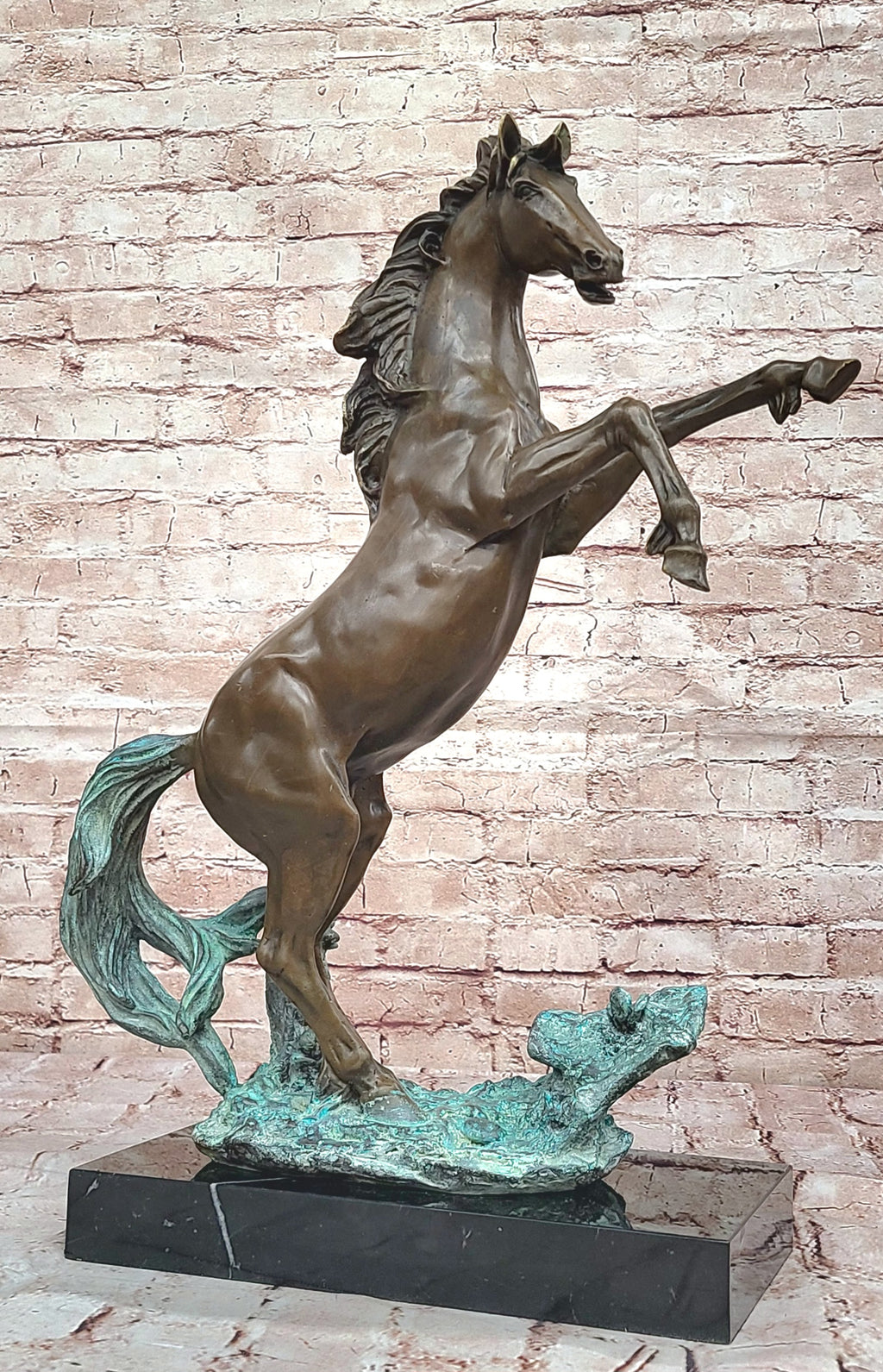 The solid and polished marble base provides a sturdy foundation that complements the intricate design of the bronze horse. Weighing 37 LBS, this sculpture is a testament to the quality materials and craftsmanship employed in its creation.