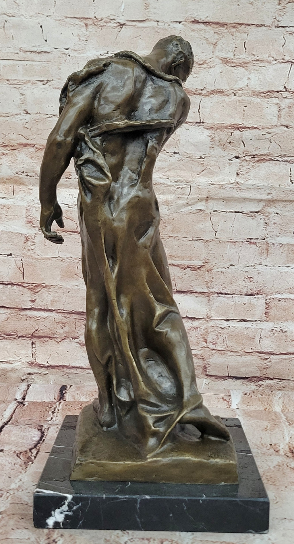 Crafted using the archaic lost-wax casting method, this bronze sculpture captures every intricate detail and nuance of Rodin's original vision. The brown patina finish adds depth and warmth to the piece, emphasizing the raw emotion conveyed by the figures. Mounted on a black marble base, this sculpture stands as a testament to Rodin's mastery and enduring legacy. With the artist's signature, this piece bears the mark of quality and is a true collector's item for those who appreciate the artistry and significance of Rodin's work.