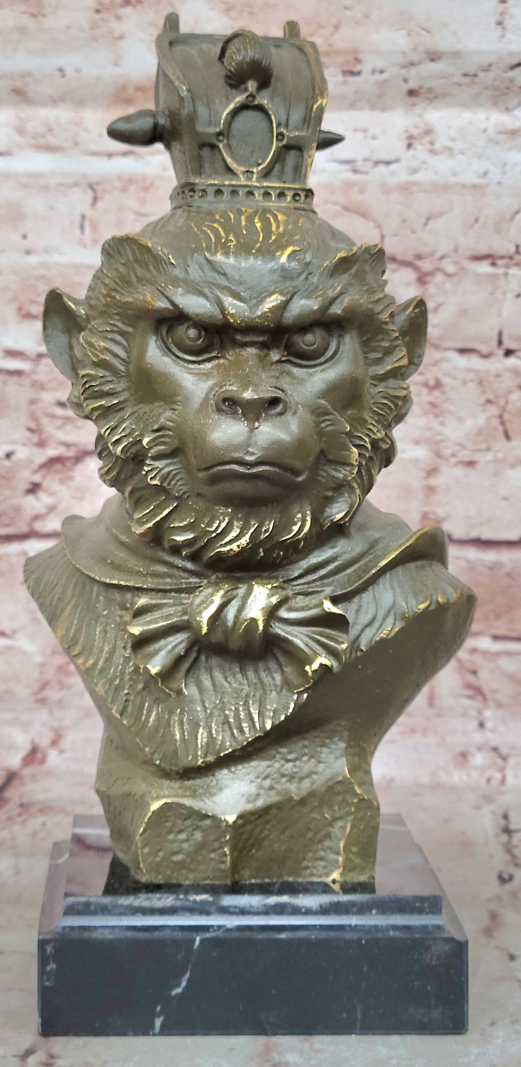 The sculpture is mounted on a polished black marble base, creating a strong and elegant contrast that elevates the visual impact. Whether as a meaningful Feng Shui ornament, spiritual gift, or collector’s treasure, this Sun Wukong bronze statue offers a bold artistic statement with deep cultural resonance.
