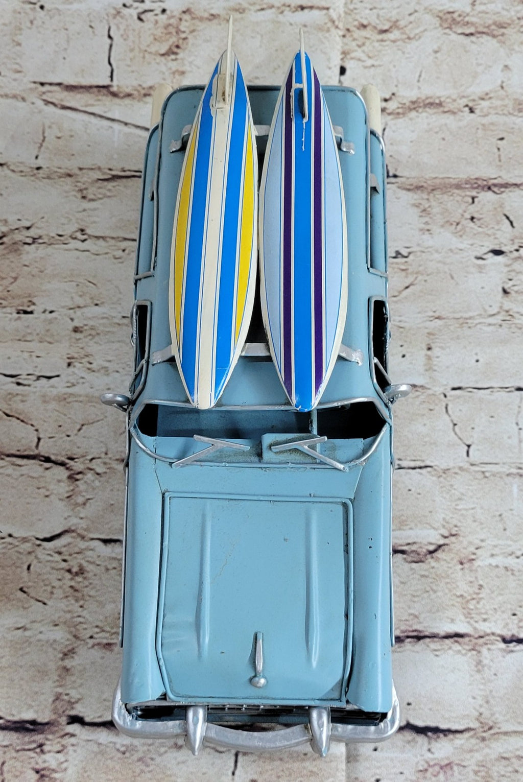 Decorate for any table, desk, or shelf in sporty fashion with Our Rustic 1956 Automobile Nomad Wagon finish project Vintage Toy Car. Featuring a rustic iron frame, this charming vintage Classic Car includes a fine detail's. The Blue and White Trim metal Exterior are finished in natural colors. For more than 20 years, European Finery has been providing high quality sculpture, accessories, and decor for any room for its customers' homes. Based in New York area, We grown to become one of the largest importers and wholesalers of home decor and hand made sculptures in the country. Whether you're looking for accent Sculpture, wall decor, vintage Toys, or just about any outdoor lifestyle sculpture , We Became a proven and trustworthy name that has become synonymous with superiority.
