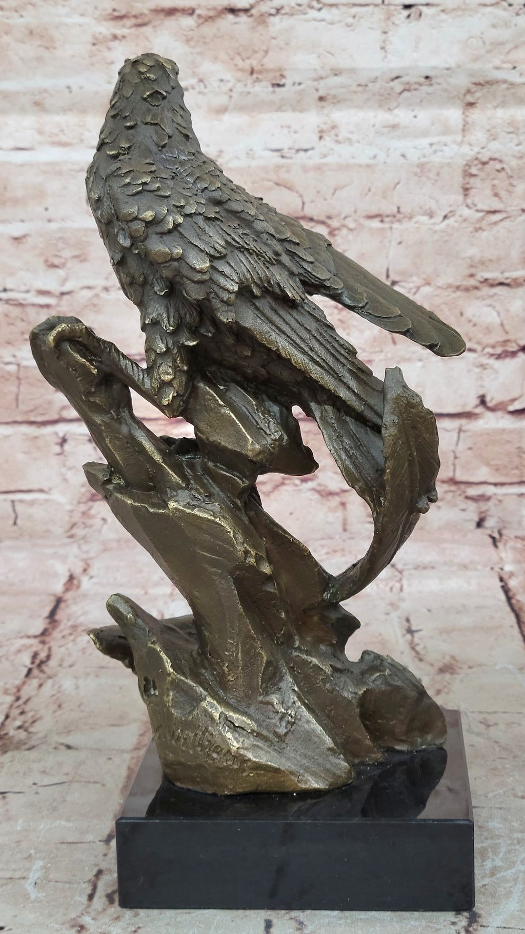 Invite the spirit of the wild into your space with this captivating eagle sculpture. Its commanding presence and lifelike features make it a perfect centerpiece for nature enthusiasts and art collectors alike. Let this bronze masterpiece bring the untamed beauty and grace of the eagle's world into your home or office, reminding you of the majesty and power found in nature's creations.