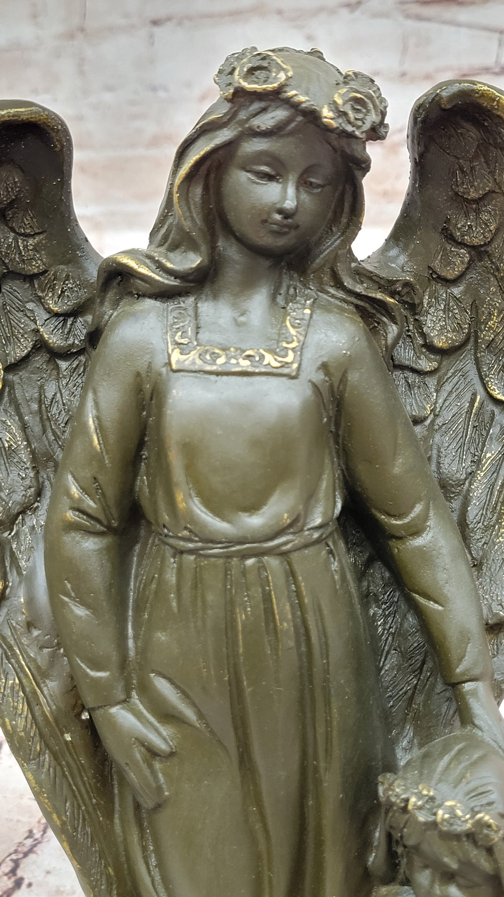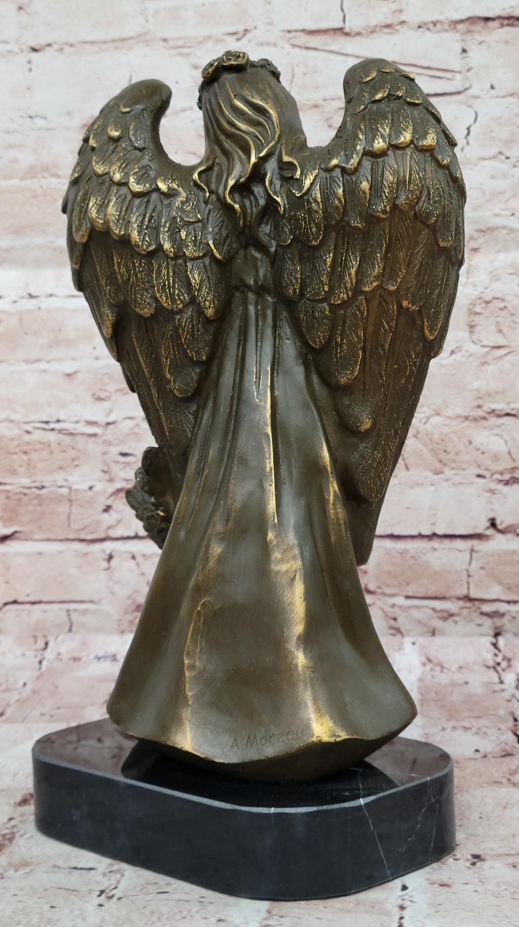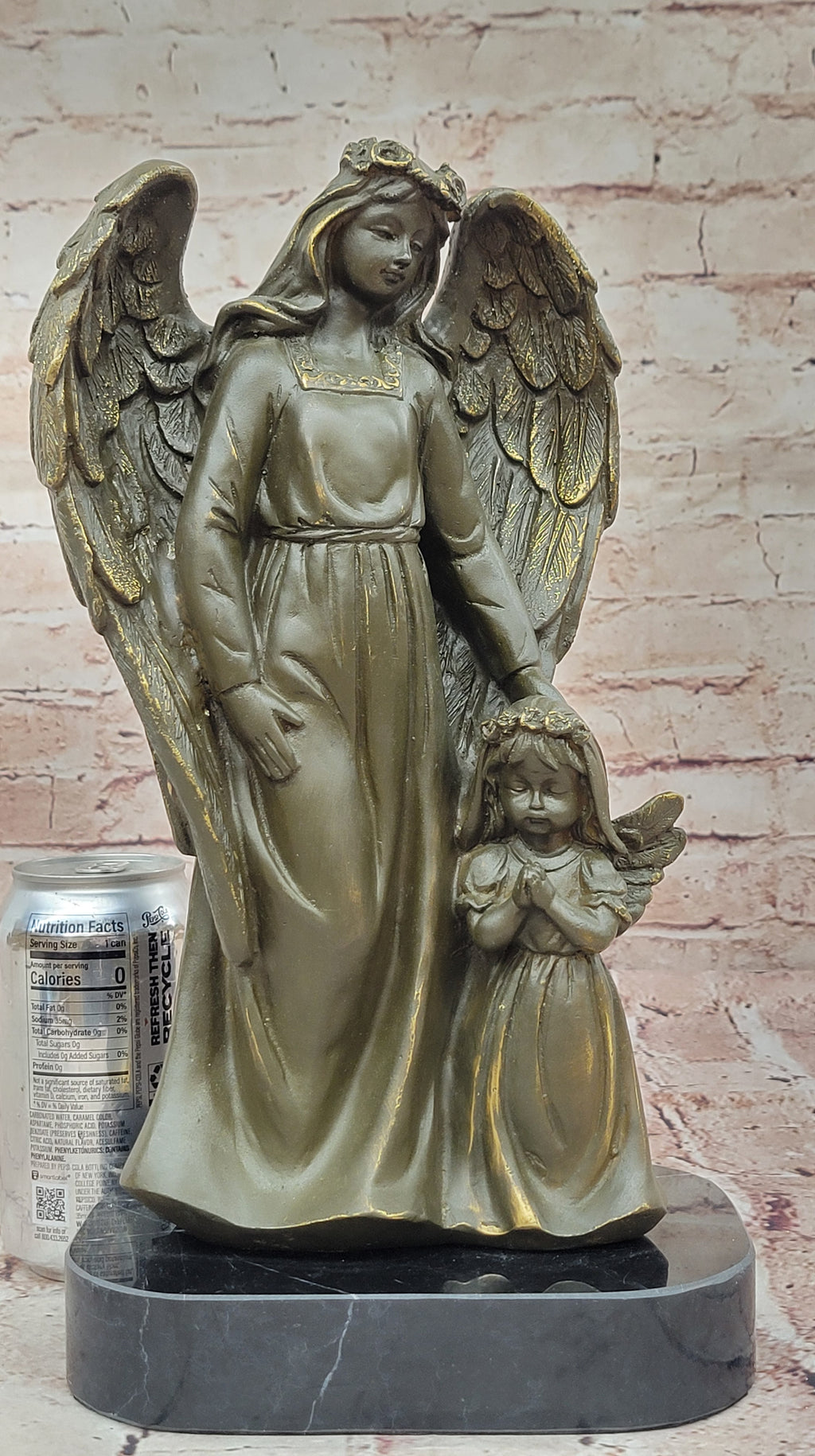 This piece is more than just a decorative artwork—it serves as a symbol of hope, faith, and eternal guardianship. Whether displayed in a home, office, or sacred space, this exquisite bronze sculpture brings an air of comfort and quiet strength to any setting. A truly meaningful work of art for collectors and anyone who cherishes the enduring image of angelic protection.