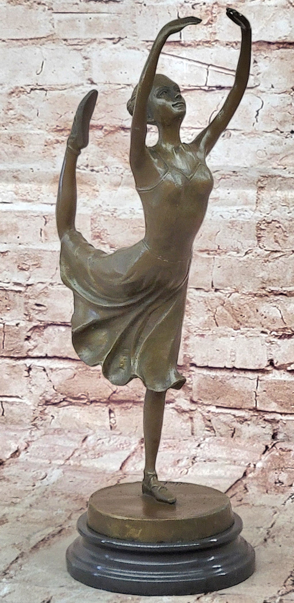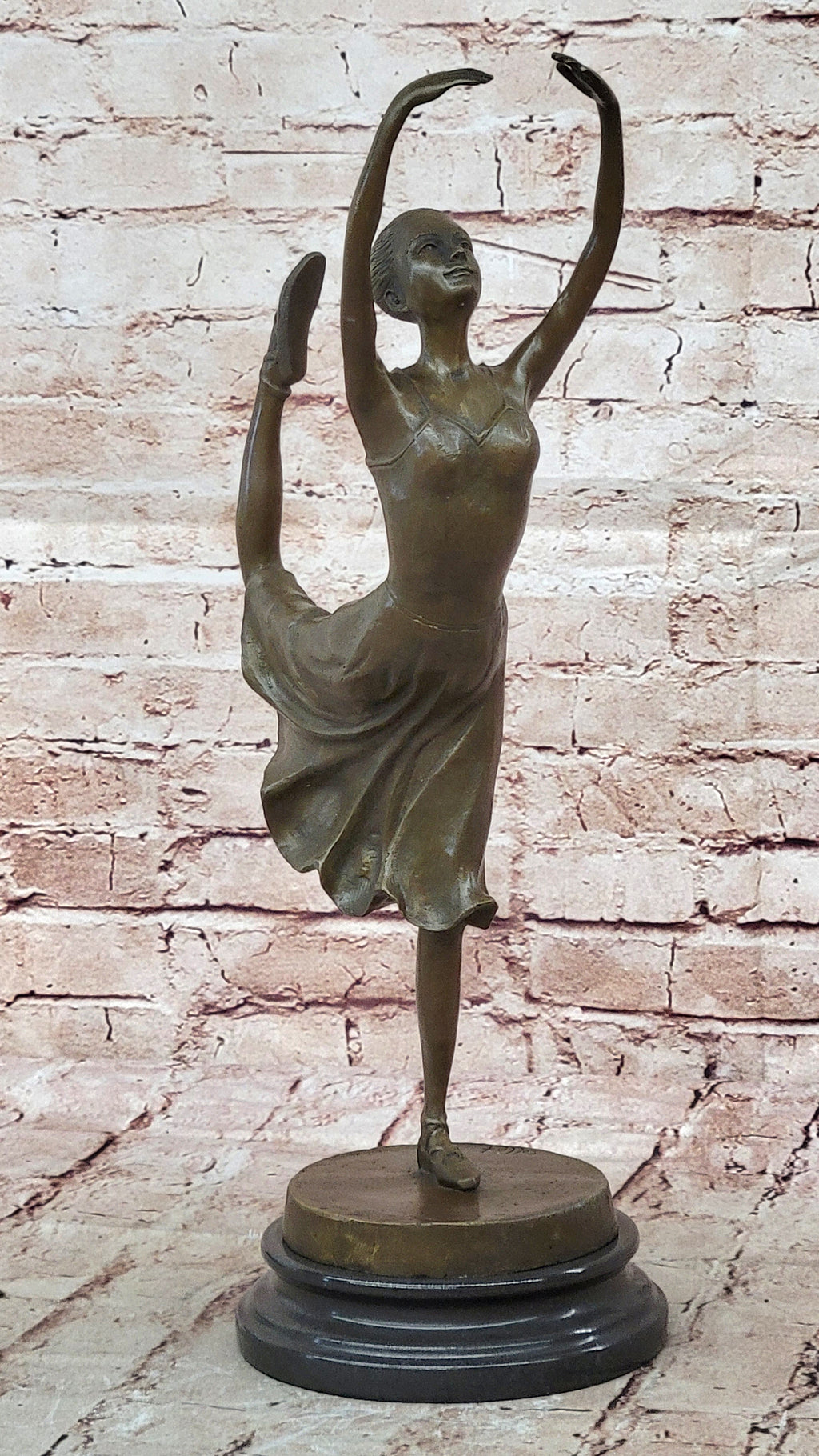 From her ballet slippers criss-crossing around her ankles to her finely tied hair and delicate facial features, every aspect of Natacha's portrayal exudes beauty and charm. It's no wonder the prince was captivated by her presence. Signed by the artist Collet and mounted on a round marble base, this bronze sculpture is a timeless masterpiece that captures the essence of grace and romance in ballet.