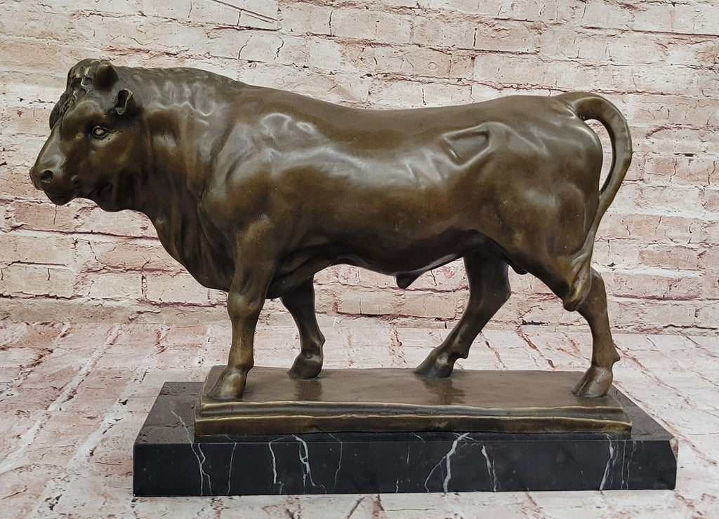 Mounted on a solid black marble base, the piece exudes a timeless elegance, making it a striking addition to any collection or decor. The contrast between the bull’s detailed figure and the smooth, dark marble base creates a perfect balance between natural power and refined artistry.