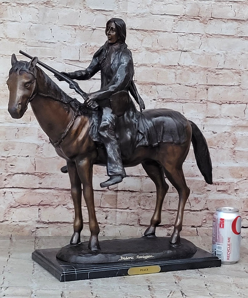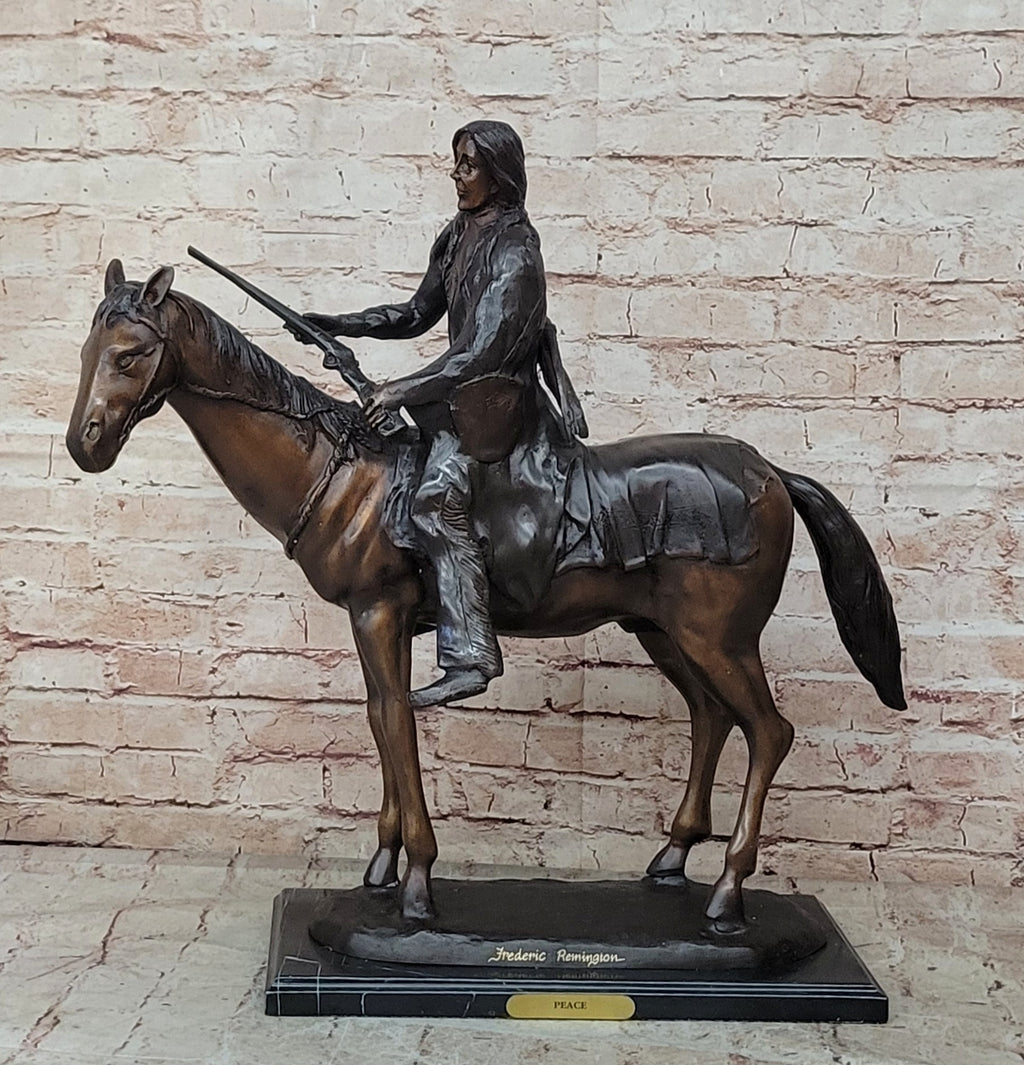 Crafted using the ancient "Lost Wax Method" and finished with a two-tone brown patina, this sculpture is a testament to the timeless artistry and craftsmanship of the artist, Remington. Signed by the artist, it is a unique and evocative portrayal of Native American culture and heritage, sure to captivate and inspire viewers for generations to come.