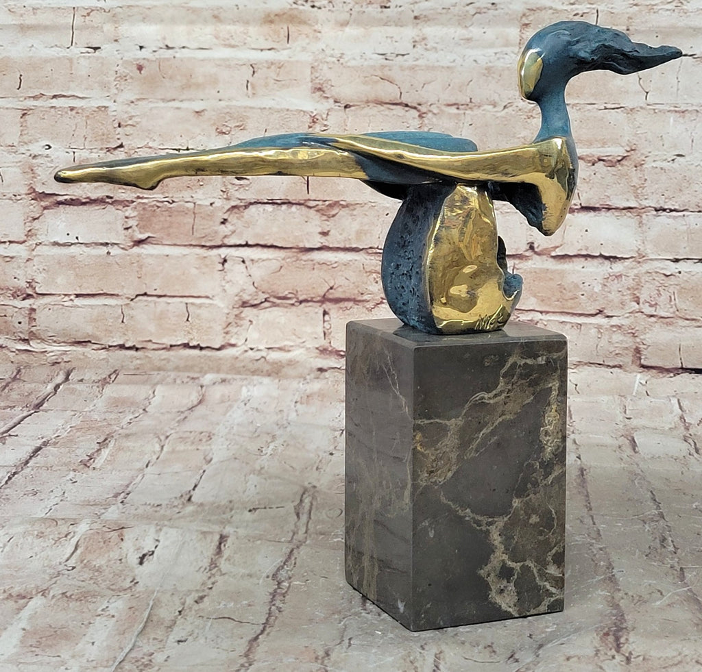 Resting gracefully on a dark marble base, this contemporary bronze masterpiece exudes elegance and sophistication. Adorned with the artist's signature, Mario Nick, this sculpture is a testament to his exceptional talent and artistic prowess.