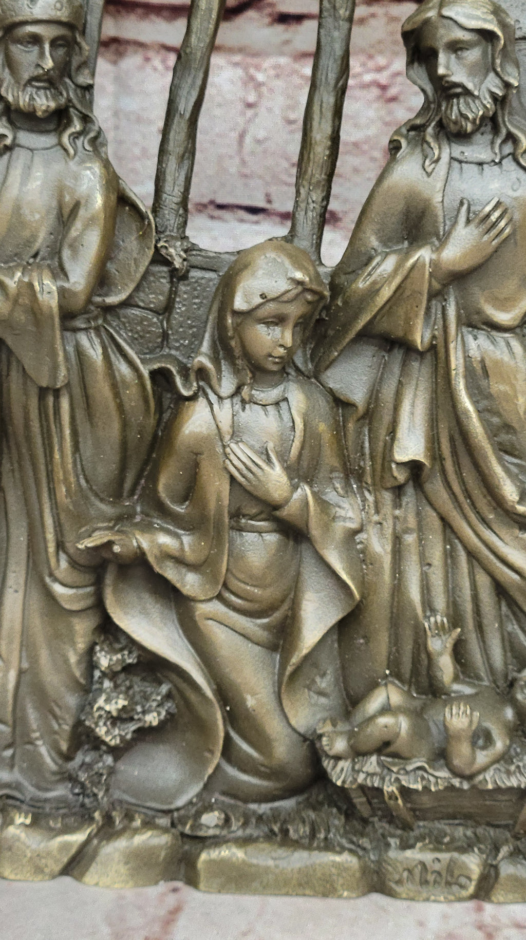 Crafted from solid bronze using the revered "Lost Wax Method," this sculpture embodies both durability and artistic excellence. Its brown patina finish not only enhances its aesthetic appeal but also preserves its timeless beauty. The plaque proudly bears the signature of the renowned artist, Milo, adding to its authenticity and collectible value. Illuminate your space with the profound meaning and artistic brilliance of this remarkable bronze masterpiece.