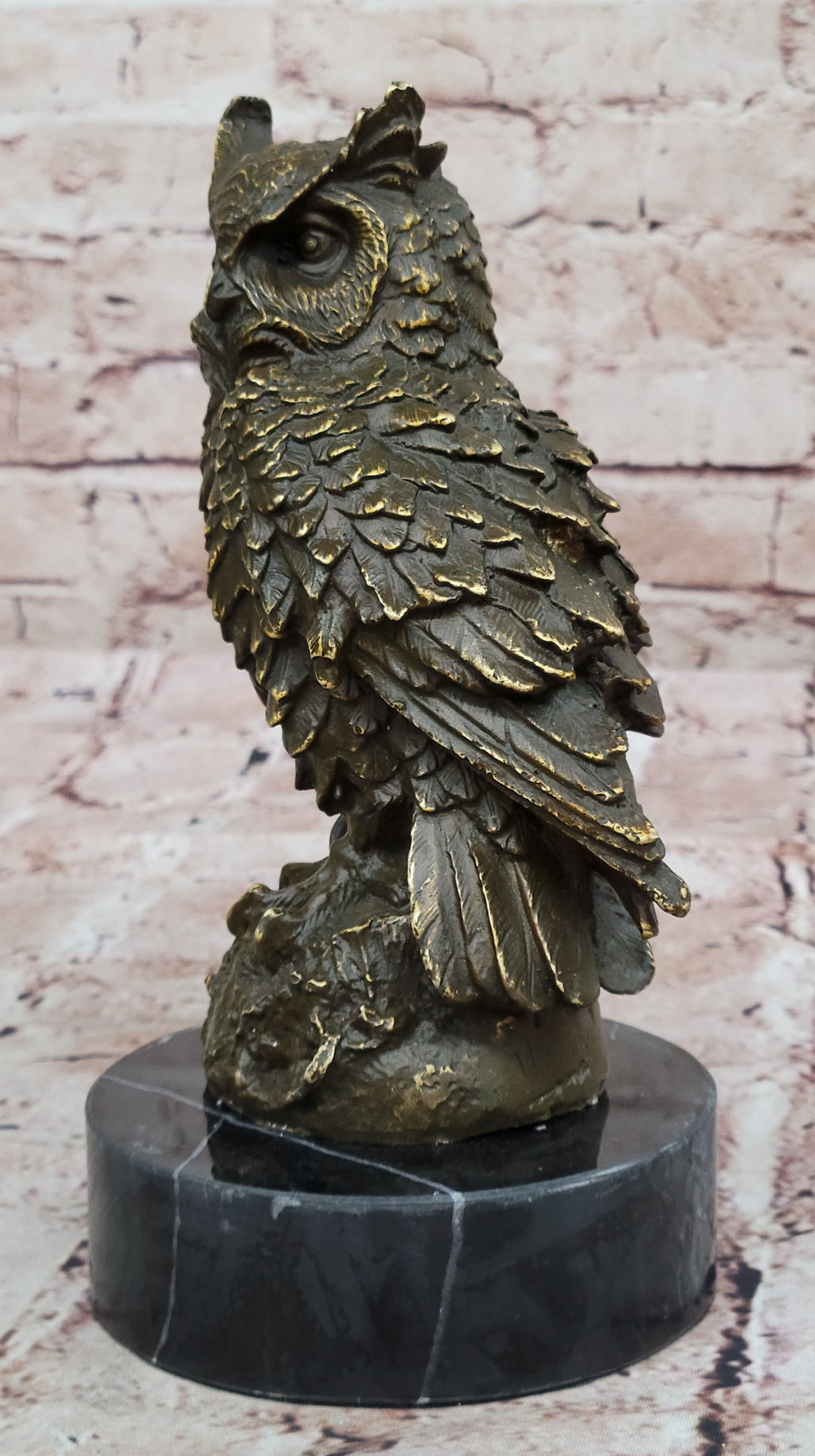 Crafted by hand using the traditional lost wax method, this genuine bronze artwork showcases a two-tone brown patina that enhances the naturalistic appearance of the feathers and body. The blending of light and dark tones adds dimension and warmth, while the fine craftsmanship ensures this piece is not only beautiful but built to last. The smooth black marble base provides contrast and a touch of elegance, grounding the sculpture while highlighting the rich bronze tones above.
