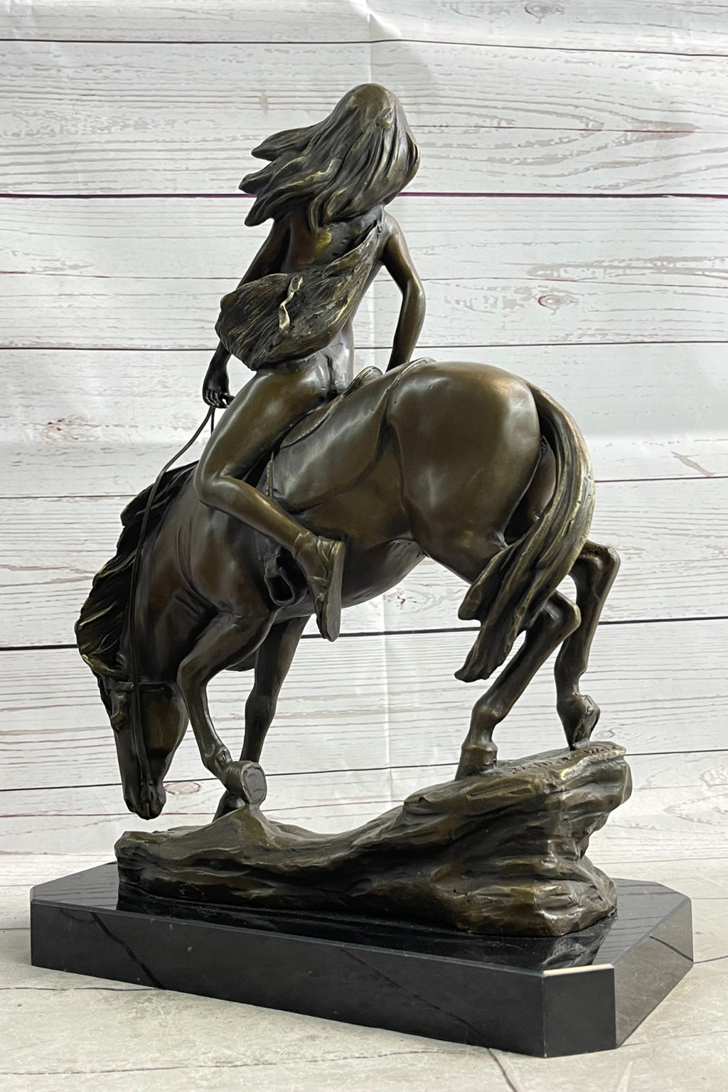 Handmade and 100% bronze, the sculpture was cast using the ancient “Lost Wax Method” and finished with a rich brown patina for preservation. Mounted atop a solid black marble base, this museum-quality artwork is signed by the artist Richter Wolf, making it a truly remarkable collectible.