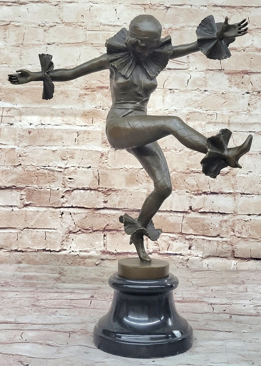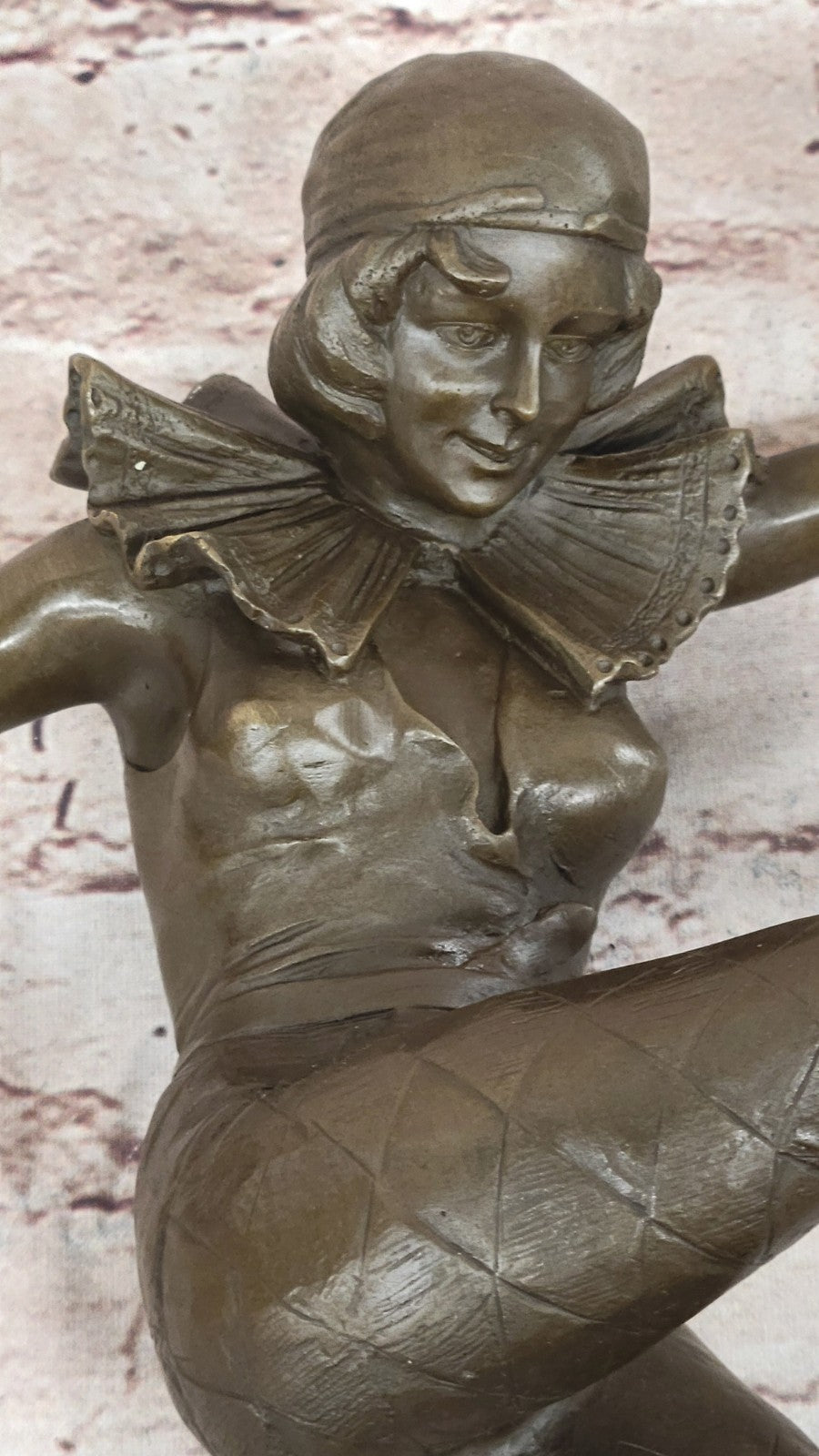 Titze's expertise is evident in the lifelike quality of Vienna Bronzes, with this harlequin clown serving as one of his finest creations. Unlike many of his contemporaries, Titze exclusively used a polychrome patinated finish, showcasing his dedication to a more time-consuming and skillful application. The result is a harmonious blend of color and form that adds to the allure of this exceptional example of Viennese bronze art. The sculpture is not just a visual delight but also a valuable collector's item, representing the artistic excellence of A. Titze.