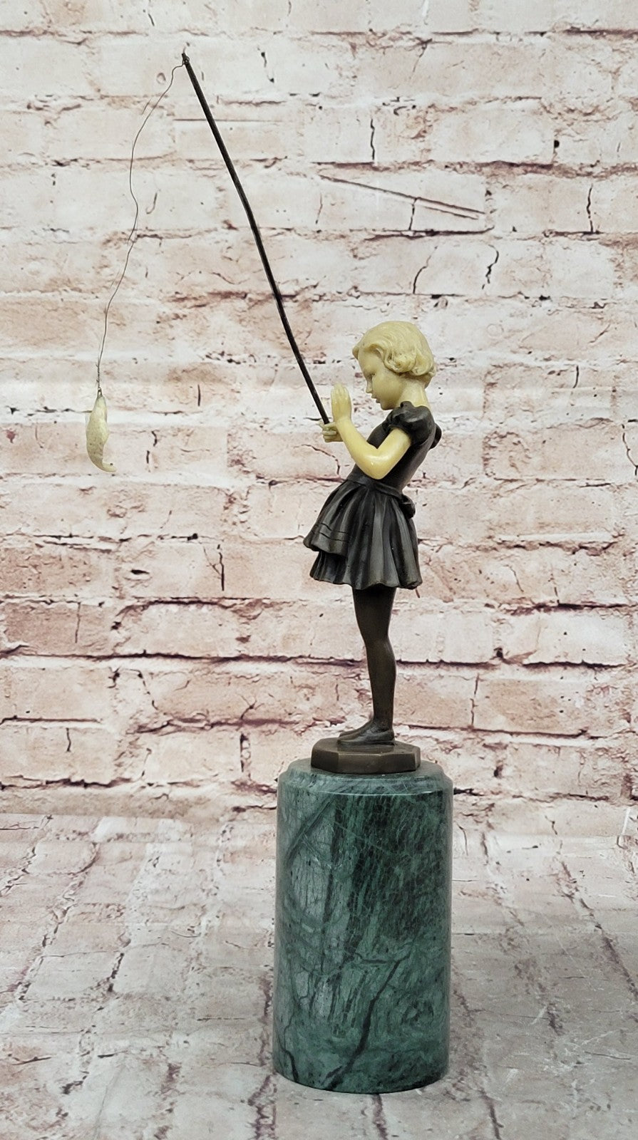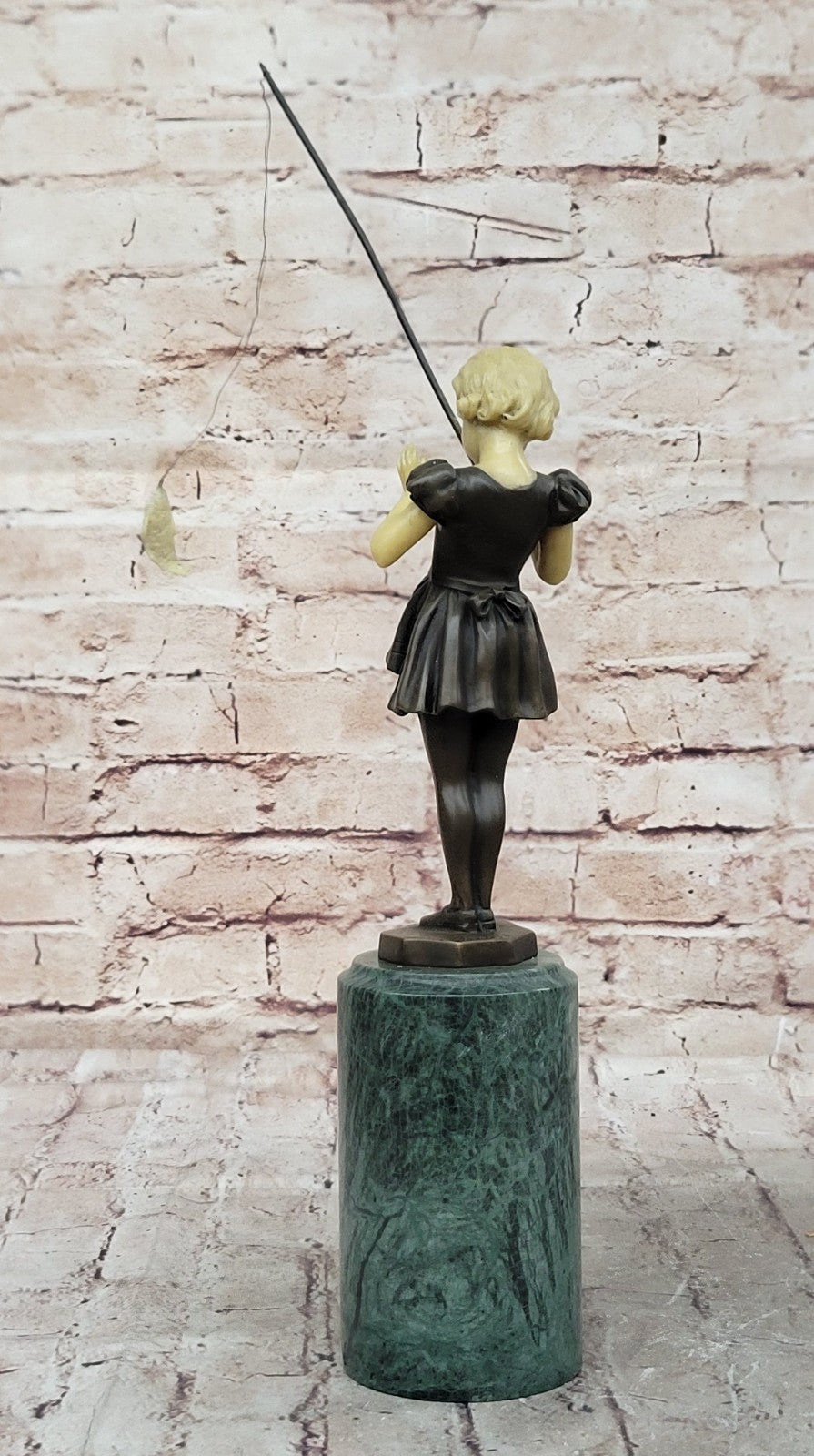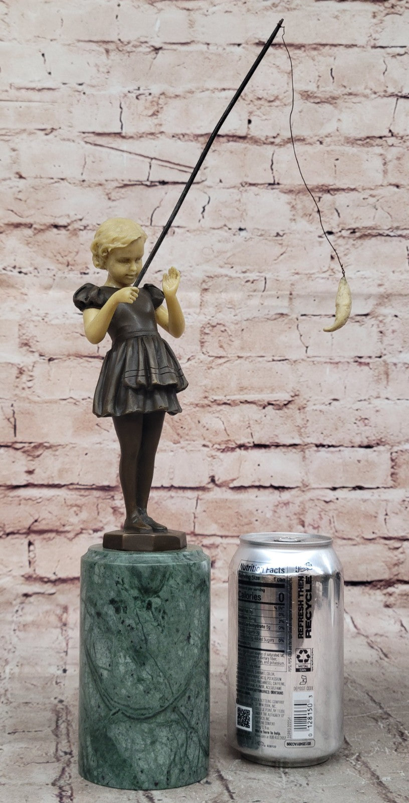 Please note that while the statue is primarily made of real handcrafted bronze using the lost wax method, the hands and face are skillfully crafted from resin, adding to the intricacy and realism of the sculpture. This captivating piece is sure to bring joy and warmth to any art collection or display.