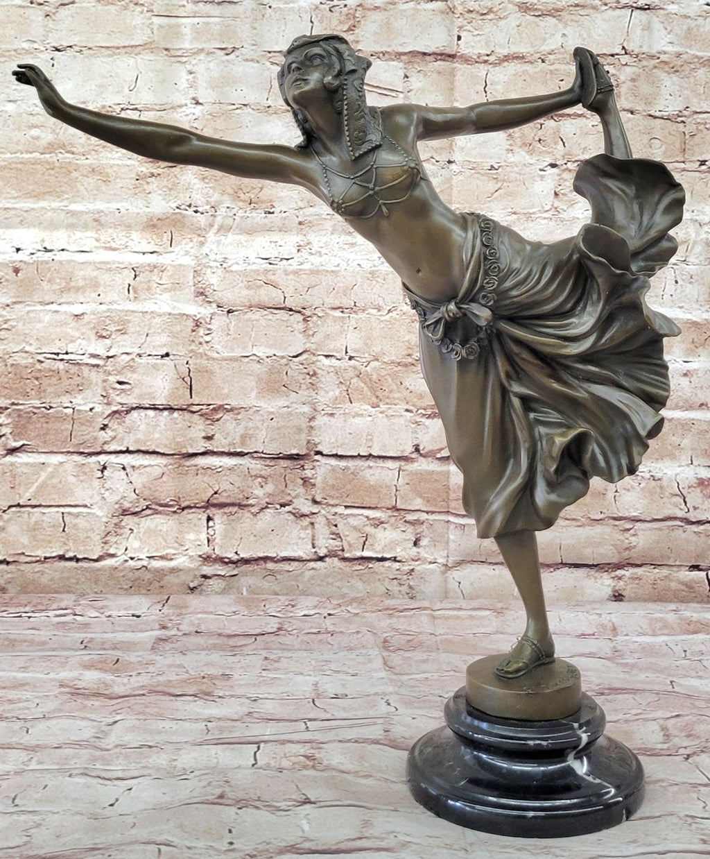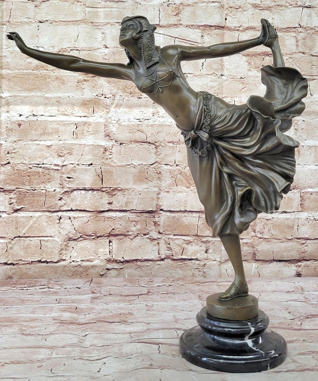 Crafted with precision using the lost wax method, this sculpture is made of 100% genuine bronze and is inscribed by the artist. It rests securely on a polished marble base, which provides a refined foundation to the dynamic pose above. In excellent condition, this artwork stands as a remarkable tribute to the beauty of dance and the artistry of one of the early 20th century’s most celebrated sculptors.