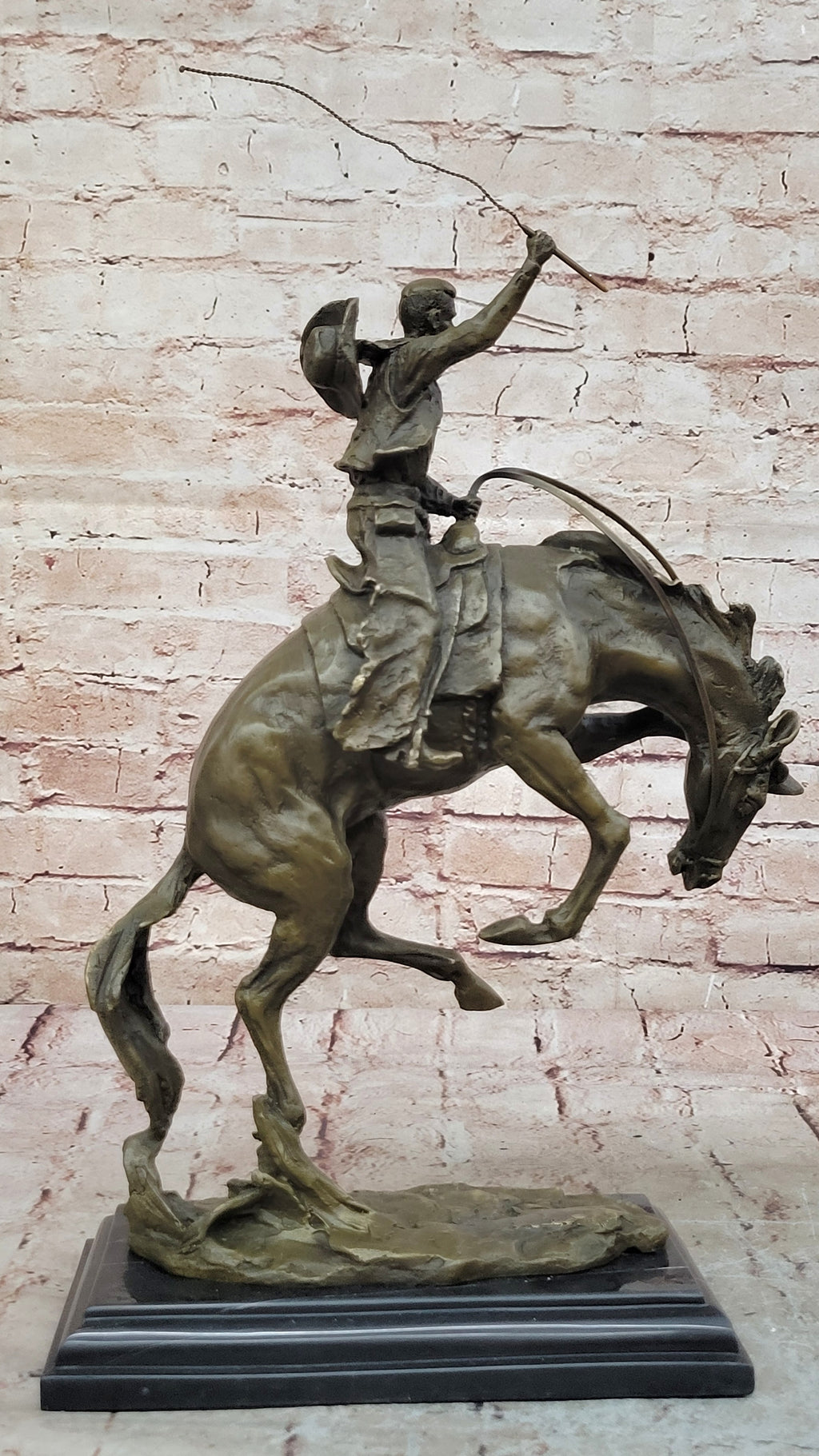 Experience the thrilling essence of the Wild West with this Bronco Buster Hot Cast Bronze Sculpture. It's more than just a piece of decor – it's a nod to American history and spirit.
