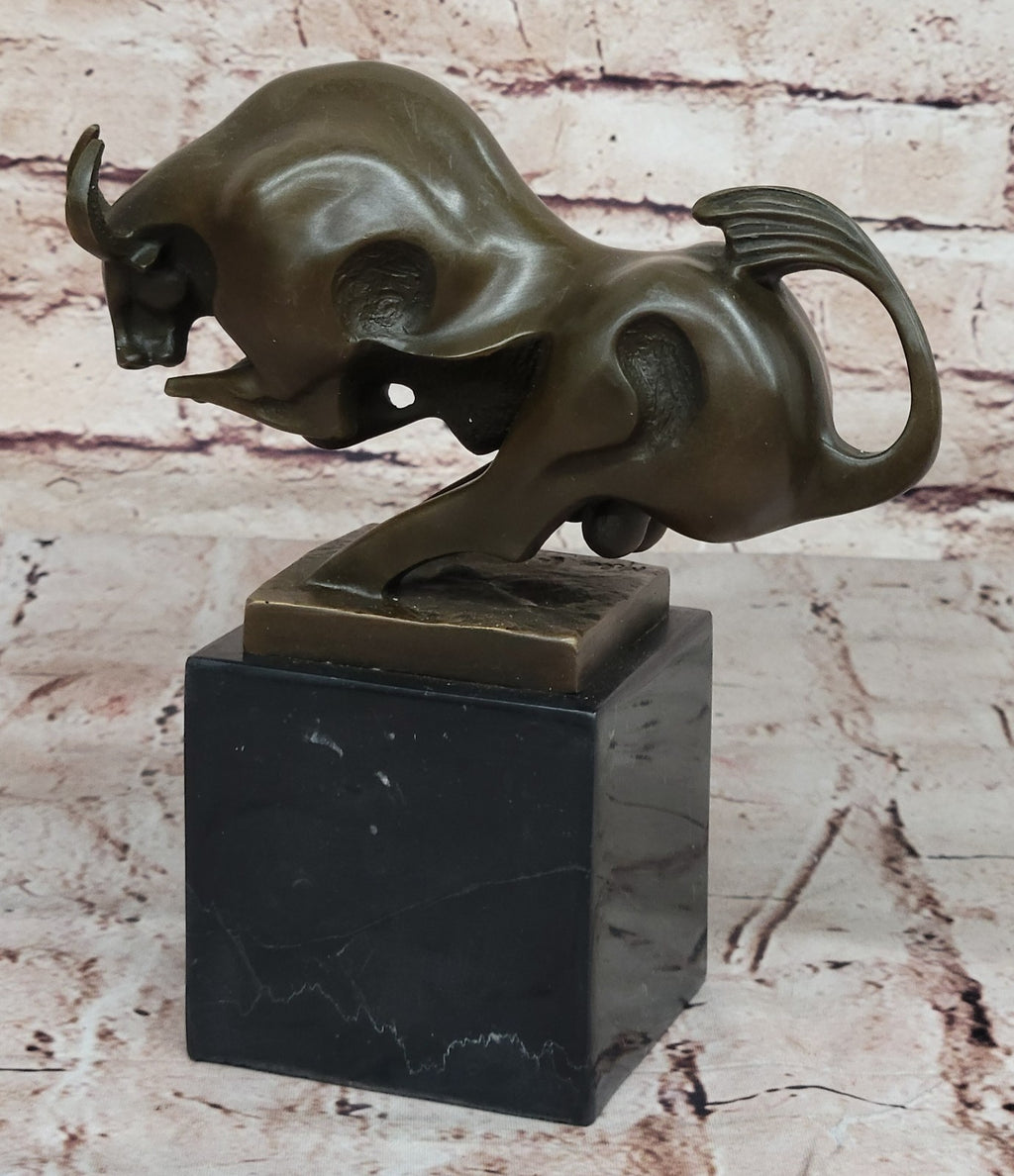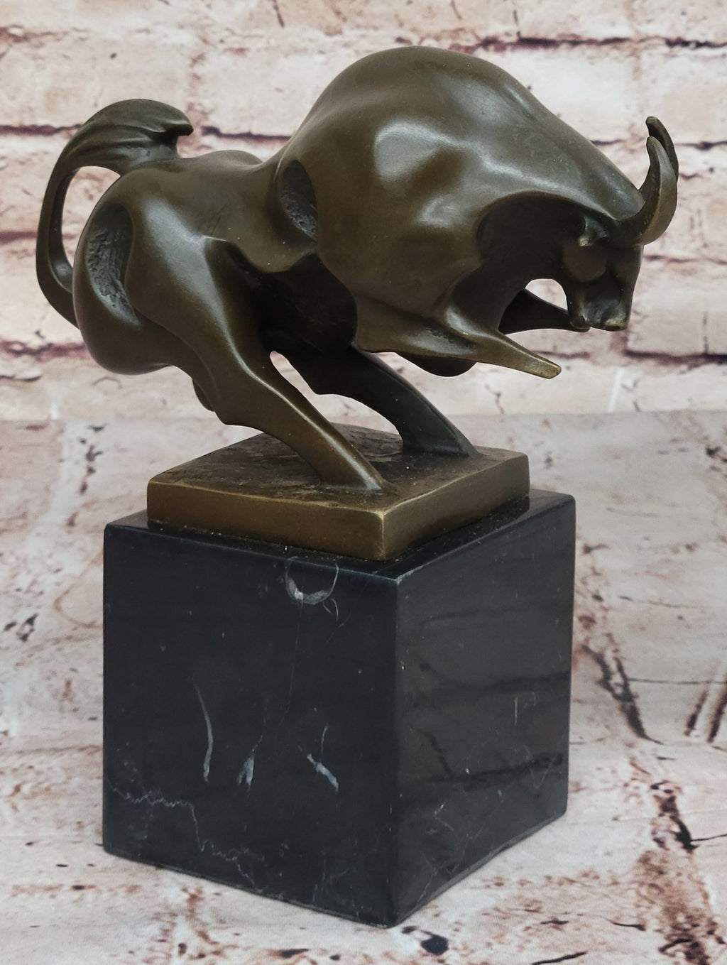 The charging bull is frozen in a pose that radiates power and aggression, creating a true masterpiece of bronze artwork. The modern and abstract design of this sculpture makes it a perfect fit for contemporary themes, adding a bold and dynamic element to any space. Crafted by hand using 100% bronze and mounted on a solid black marble base, the sculpture features a two-tone brown patina that enhances its visual appeal. The ancient "Lost Wax Method" ensures the intricate details are faithfully preserved, adding depth to the overall composition.
