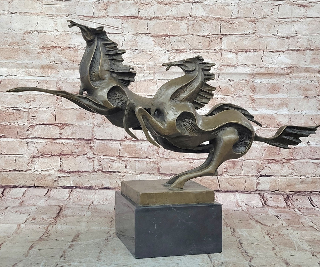 With meticulous attention to detail and a rich brown patina finish, this handcrafted bronze sculpture exemplifies the artist's skill and dedication to the craft. The intricate details and carefully sculpted contours of the horse's form convey a sense of fluidity and grace, capturing the spirit and essence of the animal in motion. The abstract modern art approach employed by the artist imbues the sculpture with a sense of contemporary flair and artistic innovation, appealing to those with an appreciation for bold and expressive works of art.