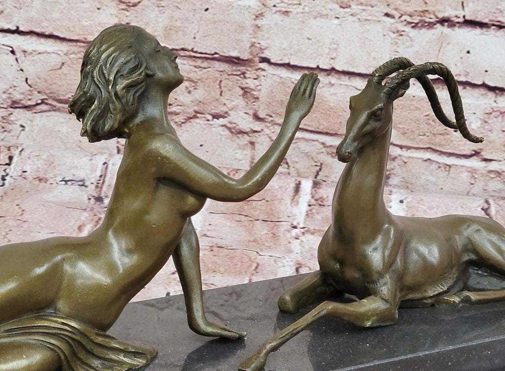 A perfect gift for lovers of classic sculpture and collectors of fine bronze, this sculpture is sure to be cherished for its artistry and aesthetic appeal. With its depiction of the bond between human and animal, it serves as a poignant reminder of the beauty and harmony found in the natural world.