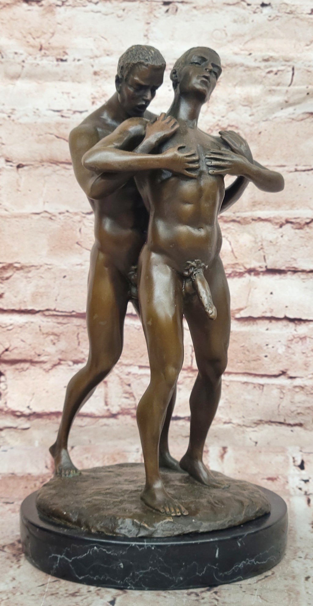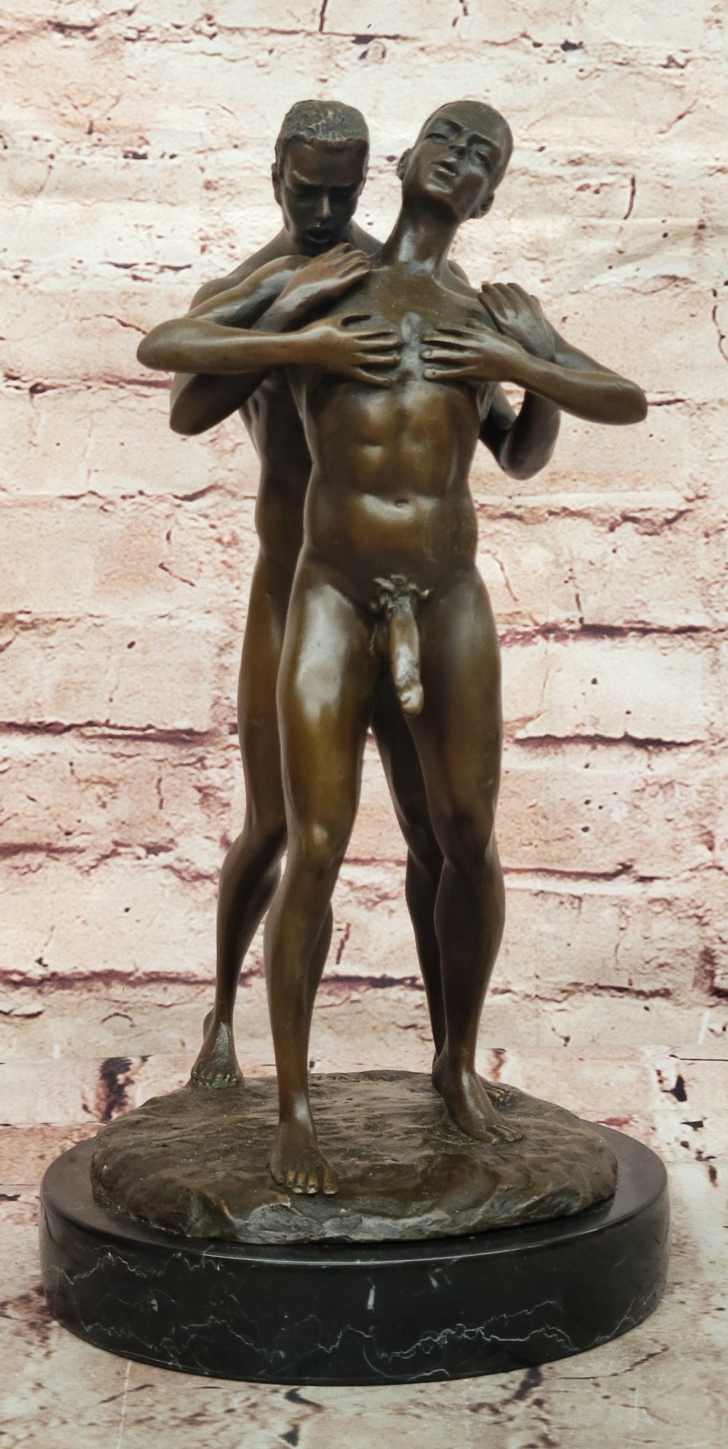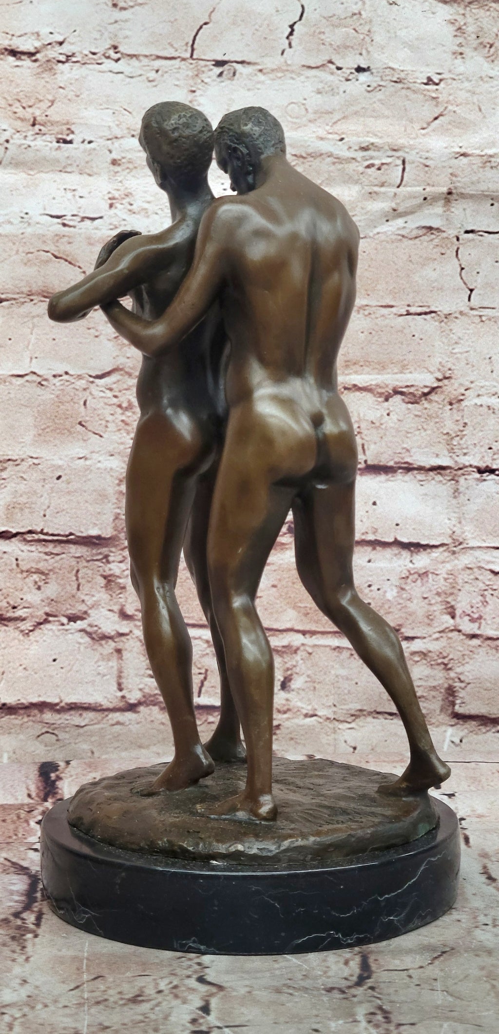 Life's true essence lies in embracing freedom, and these men exemplify that ethos through their unapologetic love. This beautifully detailed sculpture captures their emotions and relationships, providing a poignant representation of homosexual life. The meticulous "Lost Wax Method" casting technique brings out every intricate detail, showcasing the artist's commitment to capturing the authenticity of the moment. Signed by artist Mavchi, this sculpture stands as a tribute to love's unbounded expressions and the pursuit of genuine happiness.
