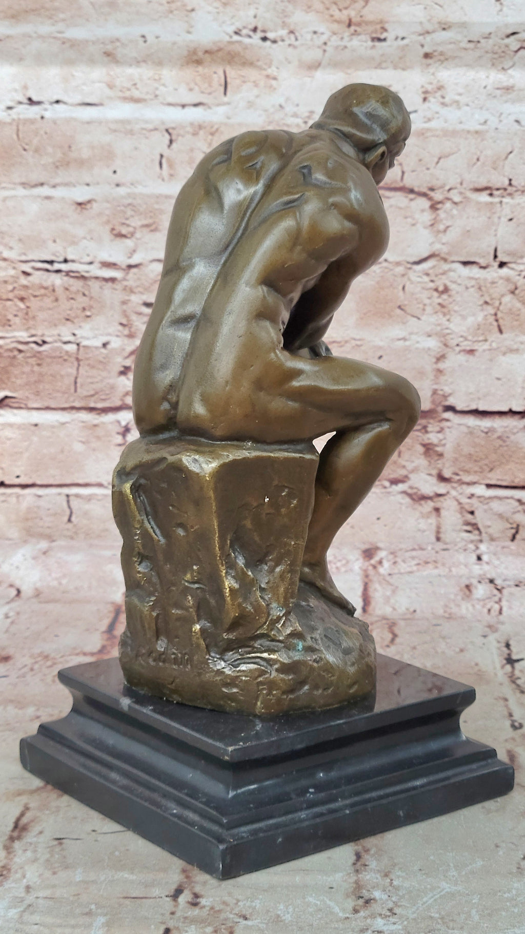 This magnificent bronze sculpture pays homage to the iconic work of Auguste Rodin, "The Thinker." Originally crafted in bronze and marble in 1902, this profound piece now resides in the Musée Rodin in Paris, surrounded by numerous other original castings, studies, and posthumous creations. It stands as a symbol of deep contemplation, symbolizing the intricate realm of philosophy and the profound battles within the human mind.